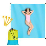 Wodoodporna mata plażowa koc piknikowy 210x200 cm niebieska z grafitowymi paskami