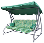 Rodzinna Huśtawka ogrodowa z Daszkiem Zielony wzór + Tekstylina 2x1 + Regulowane siedzisko + Materac + 2 Podstawki na napoje