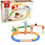 Drewniany tor kulkowy konstrukcyjny z przeszkodami