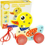 Drewniana układanka puzzle 3D kaczka kółka do ciągnięcia