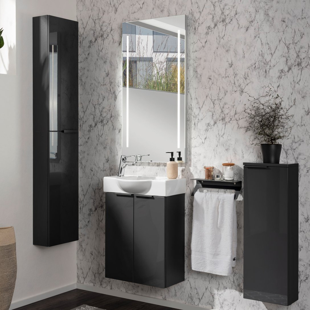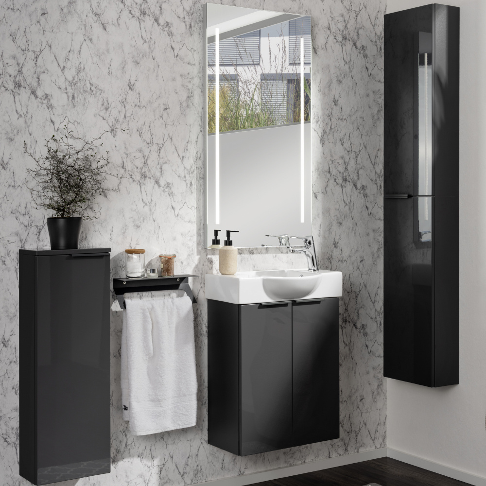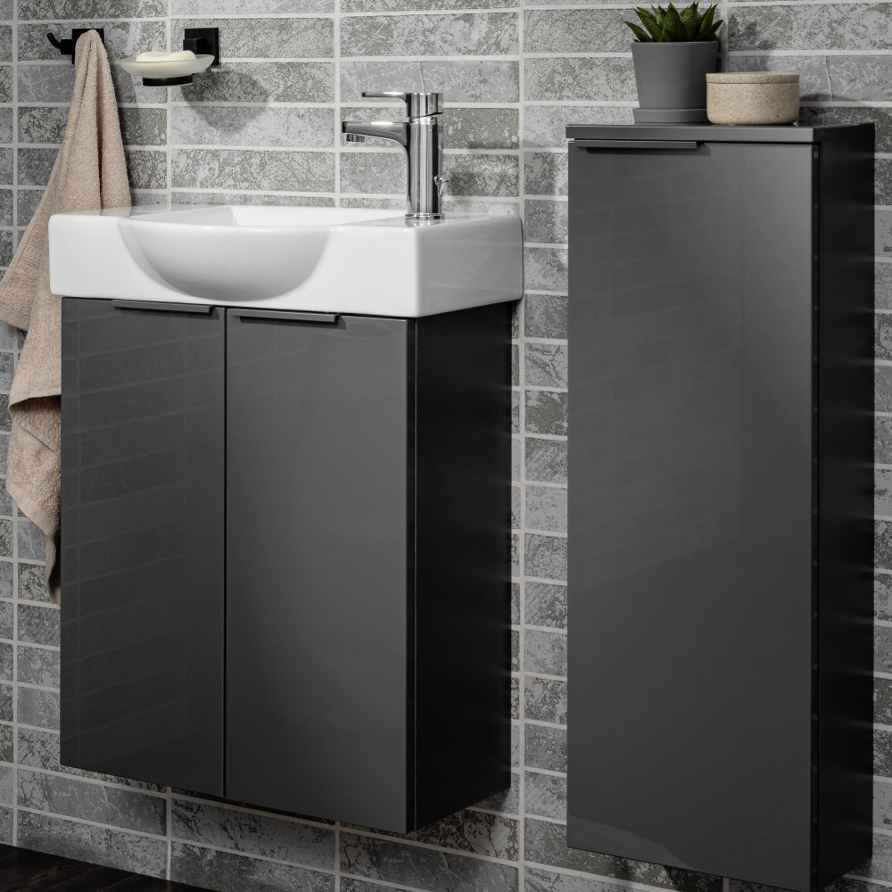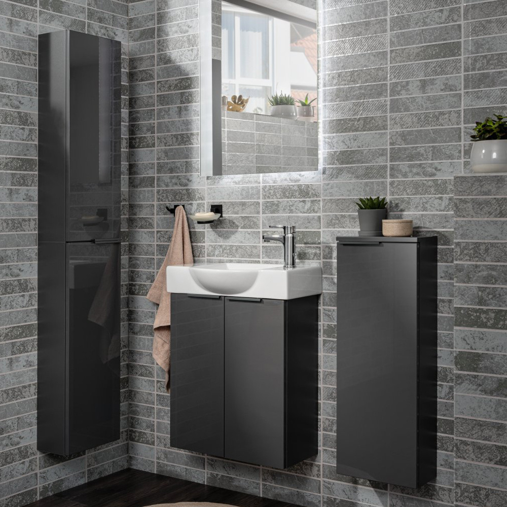 Meble łazienkowe z kolekcji Luna w głębokim, antracytowym kolorze doskonale wkomponują się we wnętrze łazienki. Wykonane są z najwyższej jakości materiałów odpornych na uszkodzenia i wilgoć.