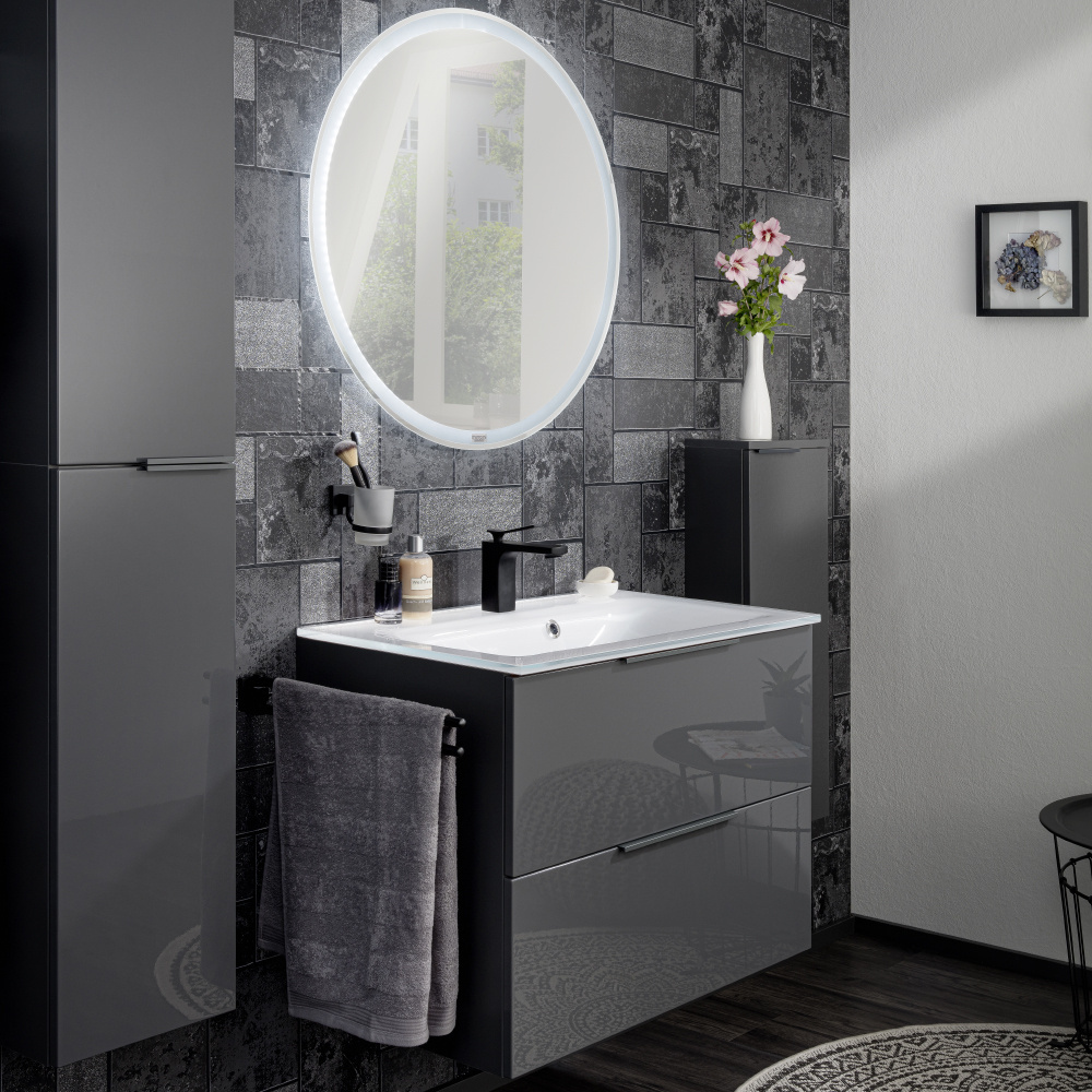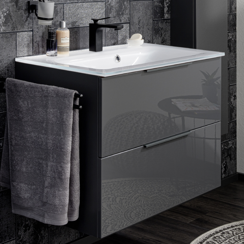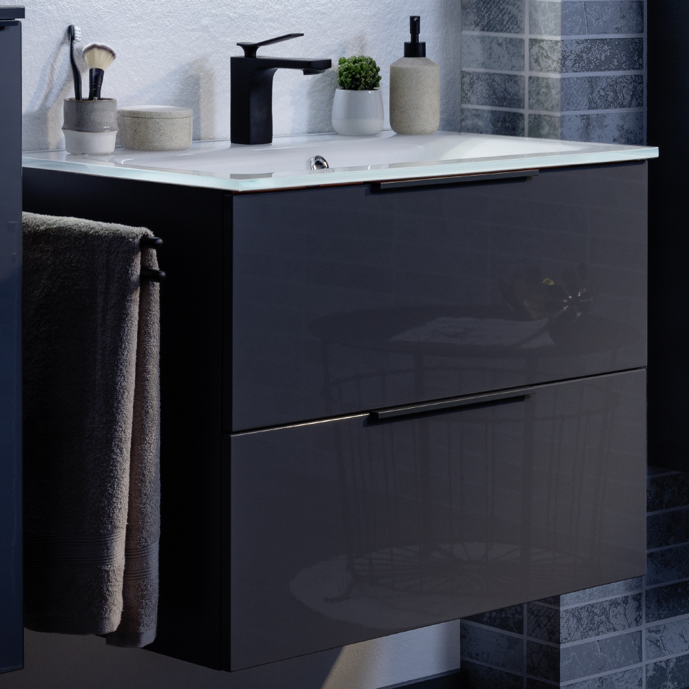 Niezależnie od wyboru, każda z dostępnych w serii umywalek, idealnie współgrać będzie z szafką o szerokości 80 cm, która posiada dwie pojemne szuflady i eleganckie, aluminiowe uchwyty, pokryte lakierem w kolorze antracytowym.