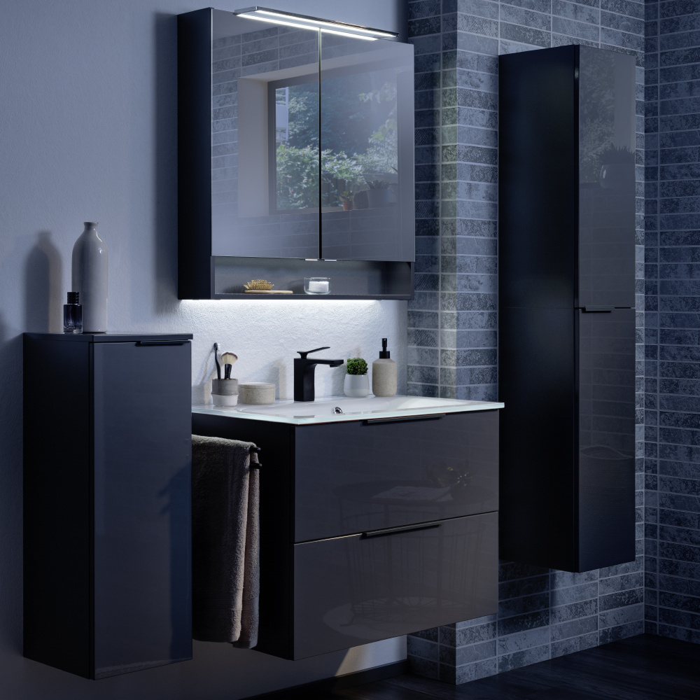 Meble łazienkowe z kolekcji Luna w głębokim, antracytowym kolorze doskonale wkomponują się we wnętrze łazienki. Wykonane są z najwyższej jakości materiałów odpornych na uszkodzenia i wilgoć.