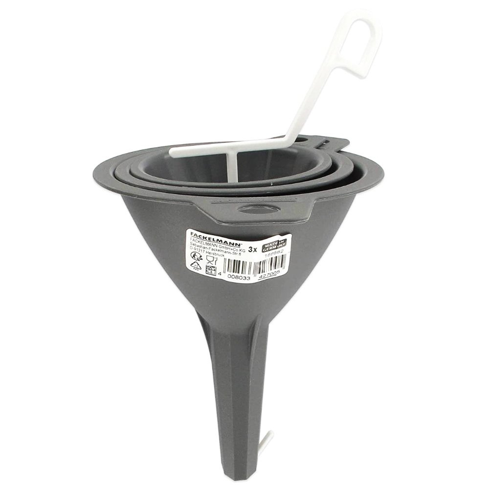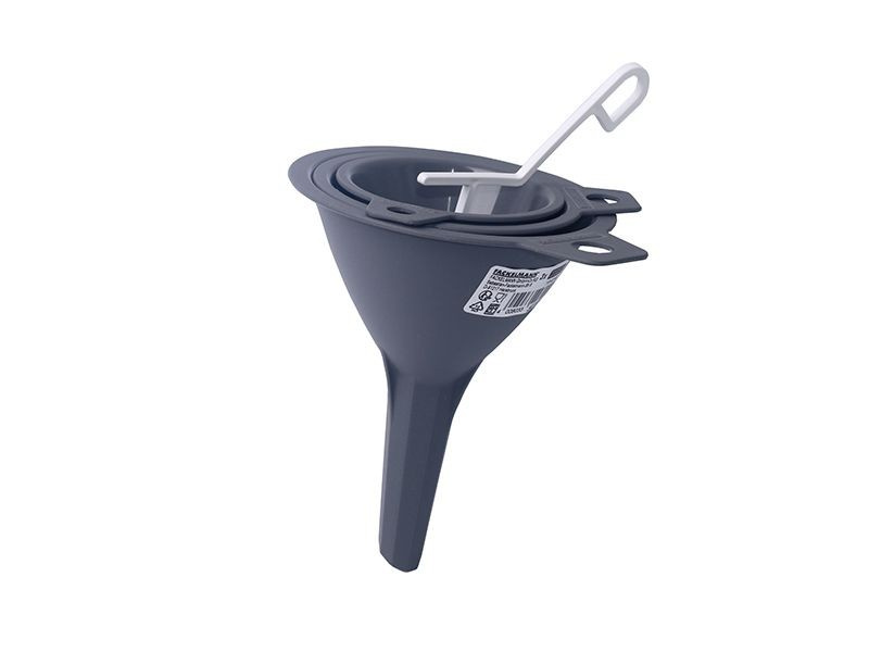 Zestaw 3 lejków o wymiarach 8 cm, 9 cm, 11 cm idealnie sprawdzą się do uzupełniania dozowników na przyprawy oraz małych butelek. Dzięki nim napełnisz każdy pojemnik bez obawy o rozsypanie bądź rozlanie produktów.