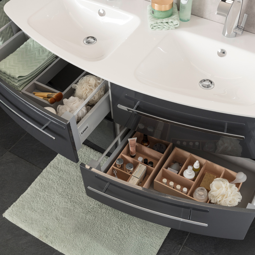 Meble łazienkowe niemieckiego producenta Lanzet produkowane są w całości w Niemczech. Wykonane z najwyższej jakości wilgocioodpornej płyty meblowej pokrytej obustronnie żywicą melaminową.
