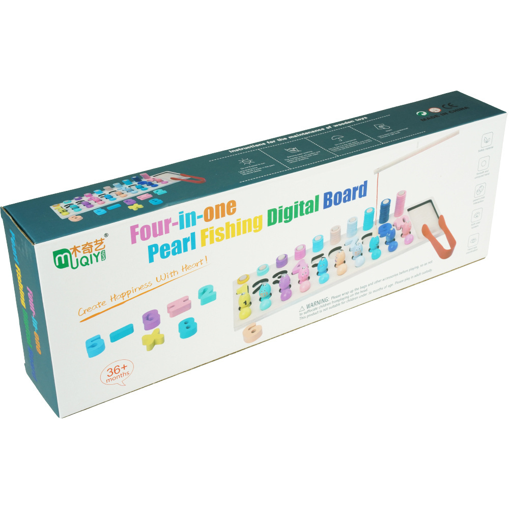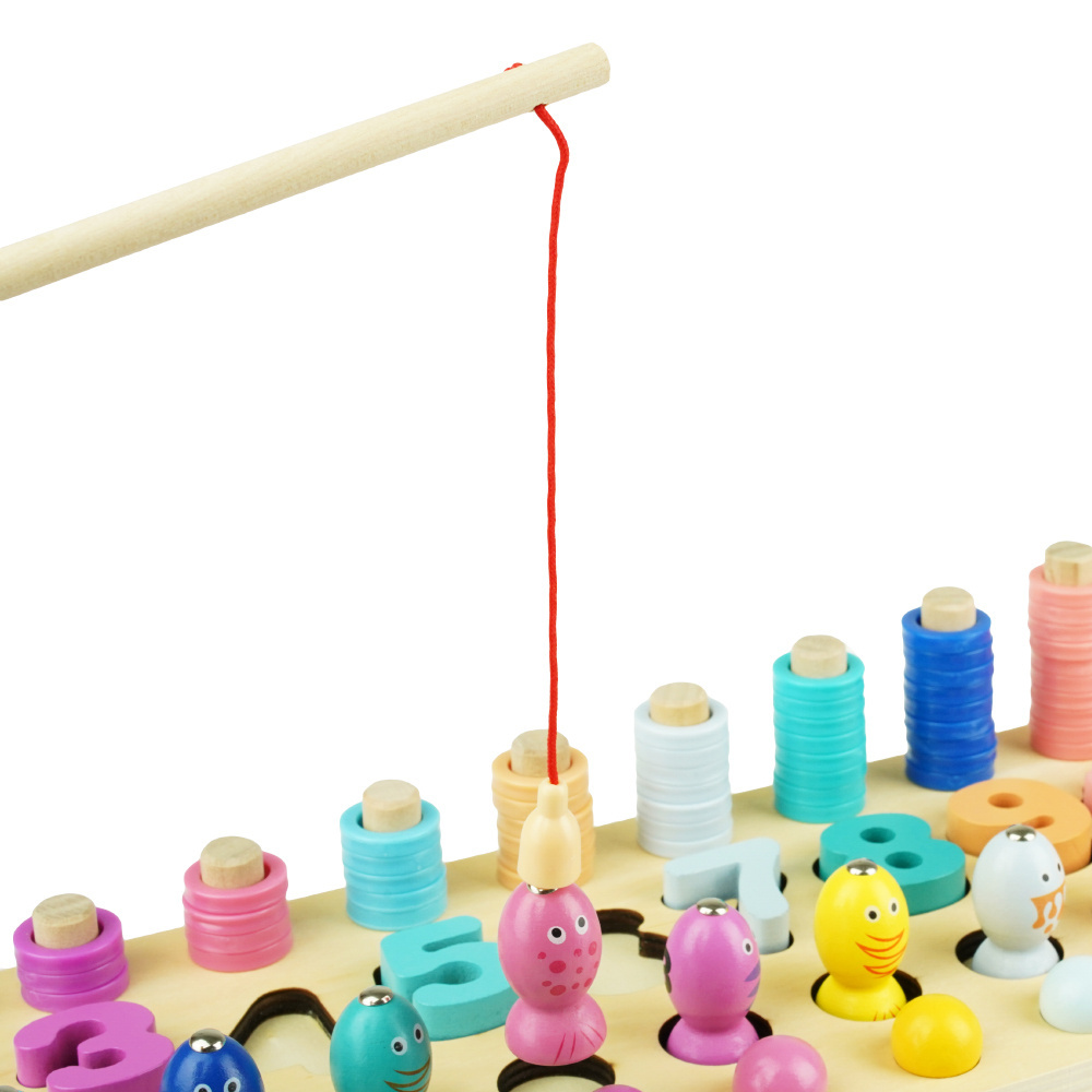 Zabawa polega na tym, aby schwytać magnesem umieszczonym na wędce rybkę i przenieść na plansze obok.