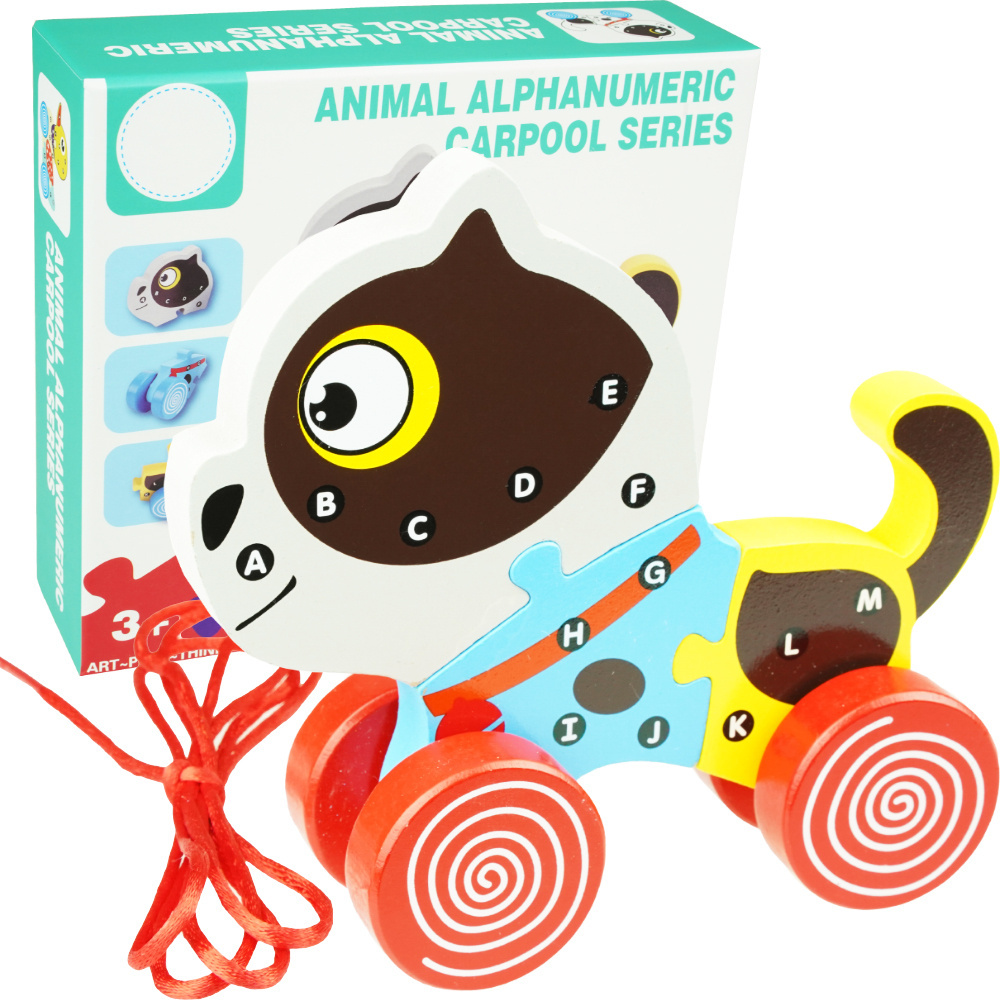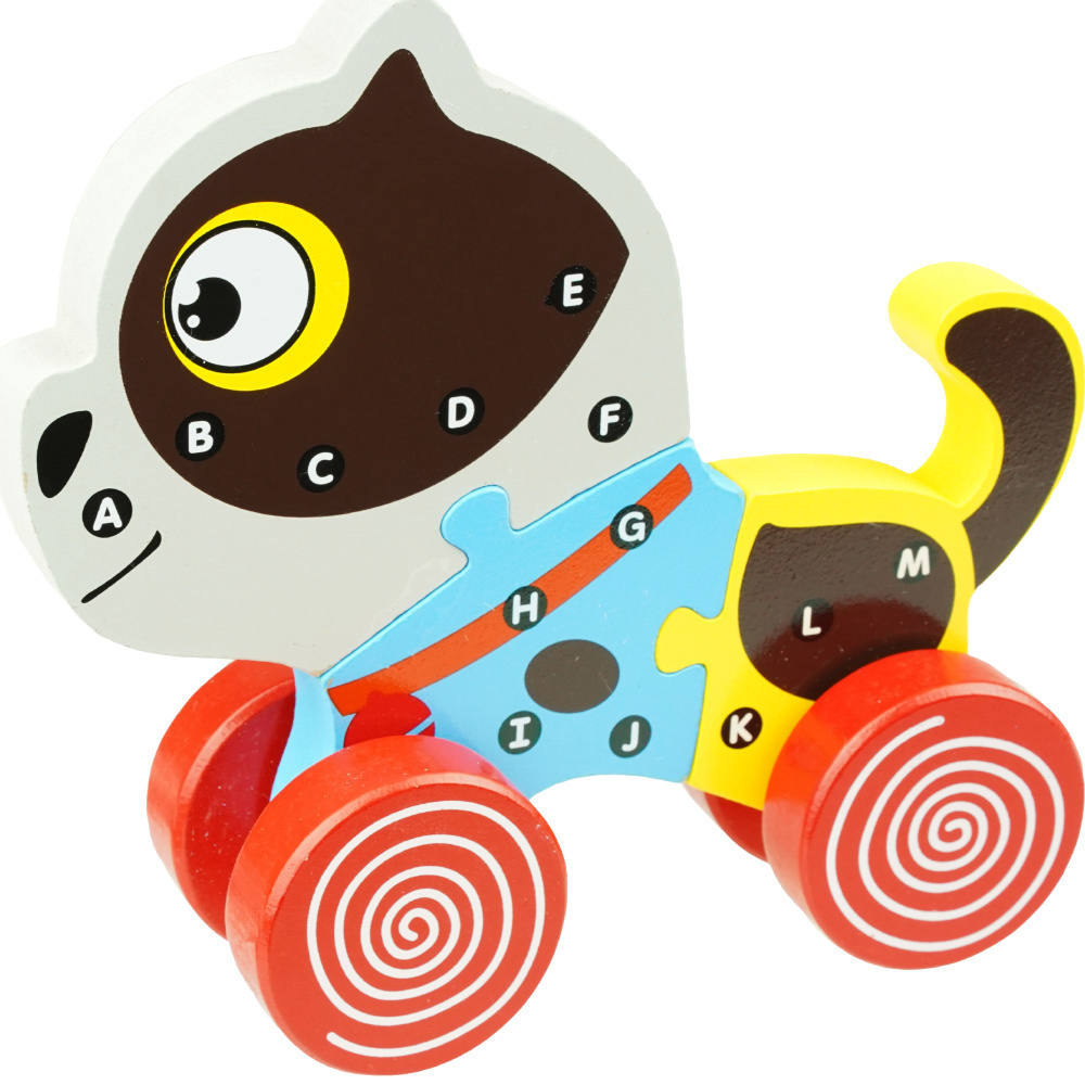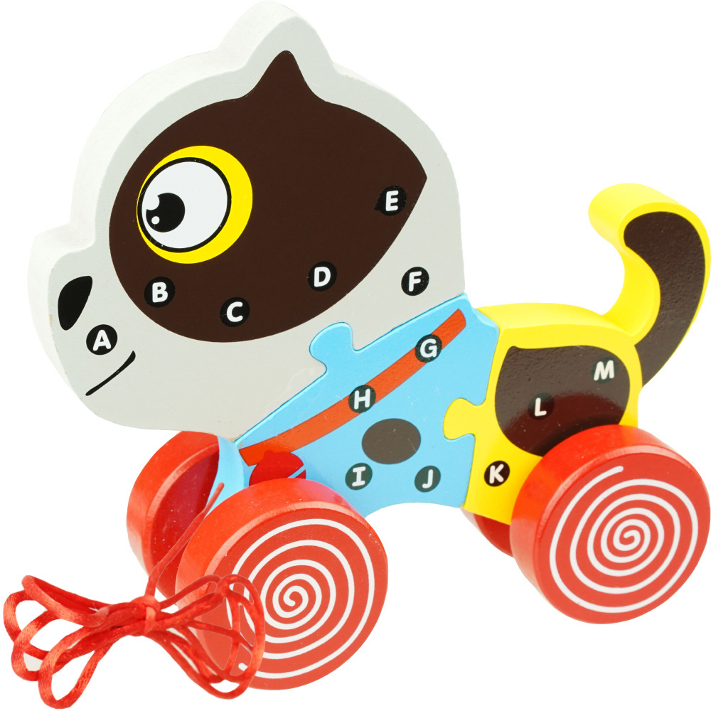 - Drewniane puzzle 3D piesek do ciągnięcia na sznurku to fantastyczna zabawa dla najmłodszych.