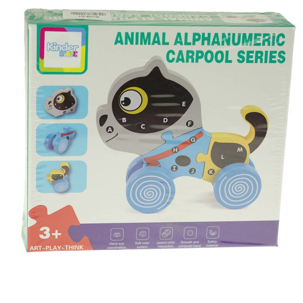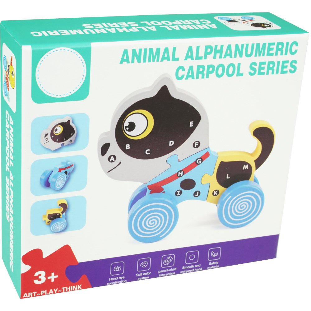 Puzzle 3D składają się z 3 elementów, dzięki czemu dziecko może rozłożyć zabawkę a następnie złożyć, PIESKA można ciągnąć za pomocą dołączonego sznureczka.