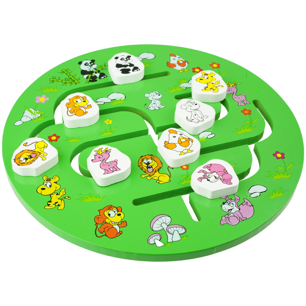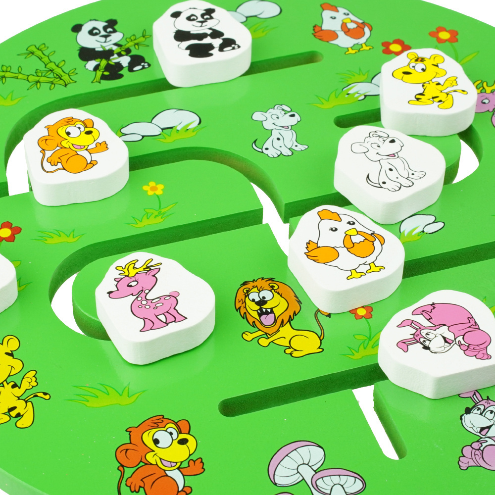 Drewniana kolorowa układanka labirynt z torem ruchu zwierzątka to doskonały przykład edukacyjnej zabawki, która wciąga dzieci w angażującą aktywność, jednocześnie wspierając ich rozwój na kilku płaszczyznach.