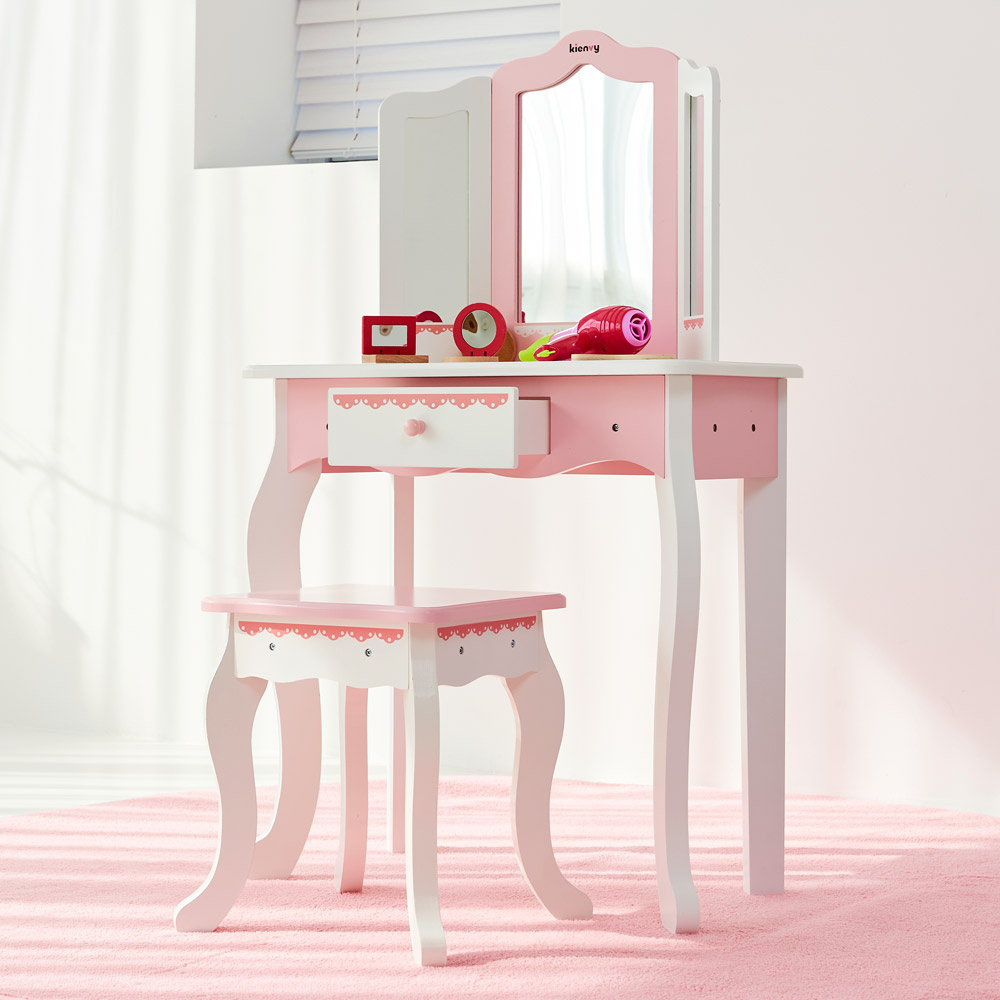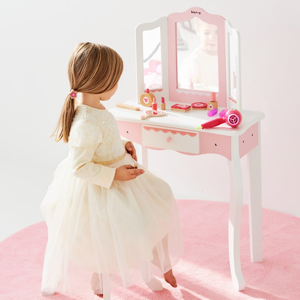 - Różowa toaletka z potrójnym lustrem oraz taborecikiem zapewni ogromna frajdę małej księżniczce. Ta elegancka toaletka spełni najskrytsze marzenia każdej dziewczynki.