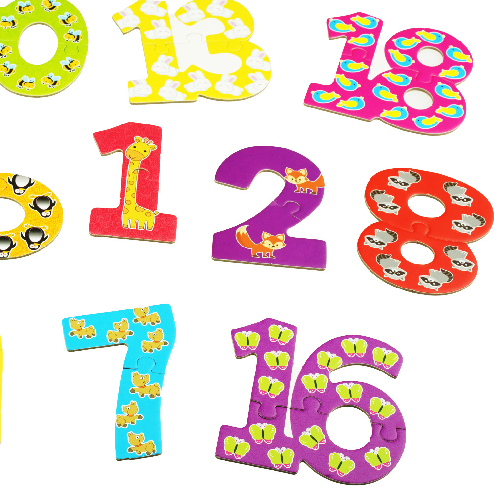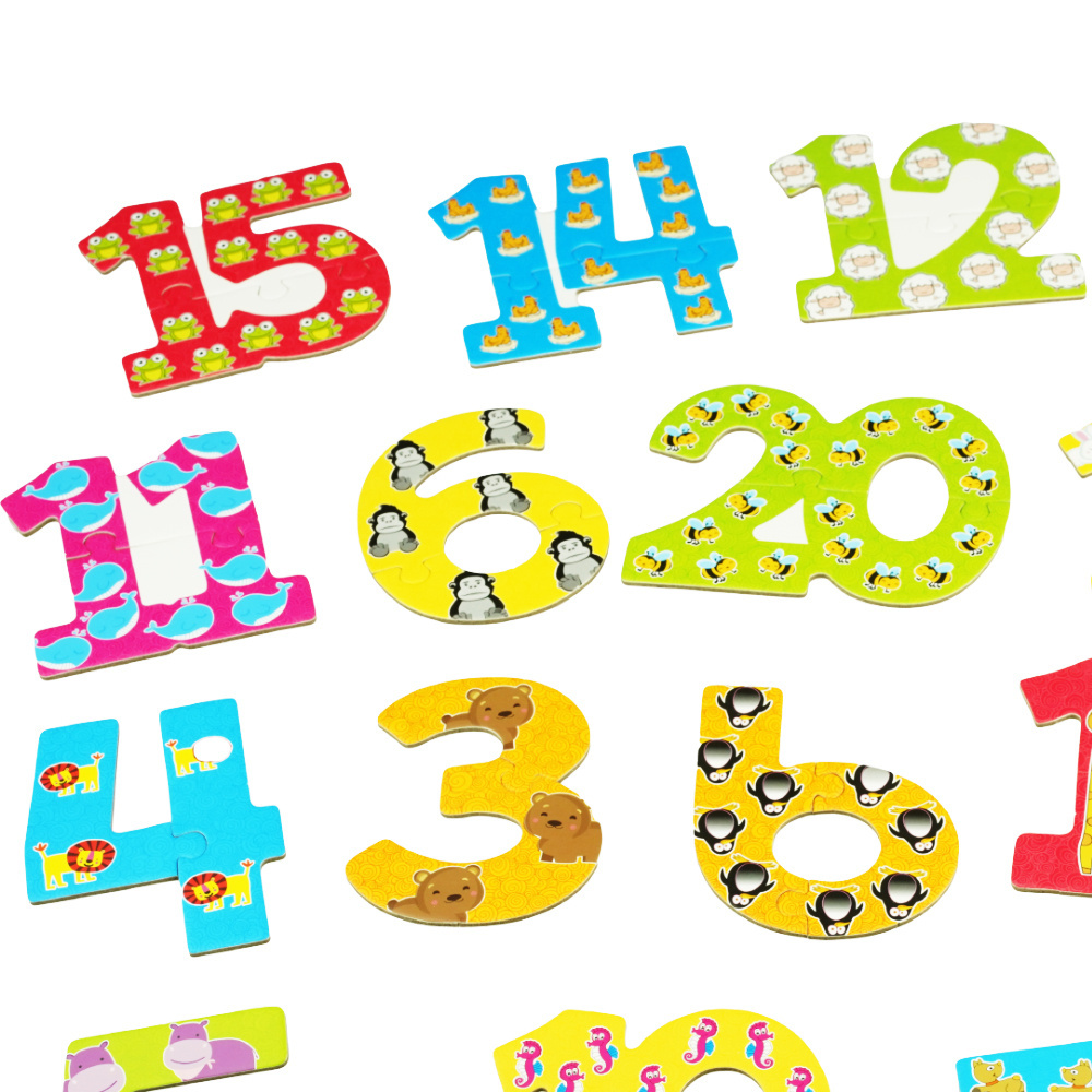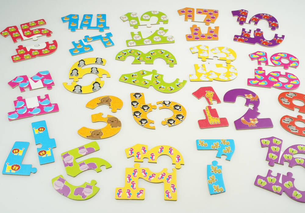 Puzzle do nauki to świetny pomysł na łatwy i przyjemny sposób przyswojenia i utrwalenia poszczególnych cyferek. Ponadto obrazki namalowane na puzzlach ułatwia ich zapamiętywanie.