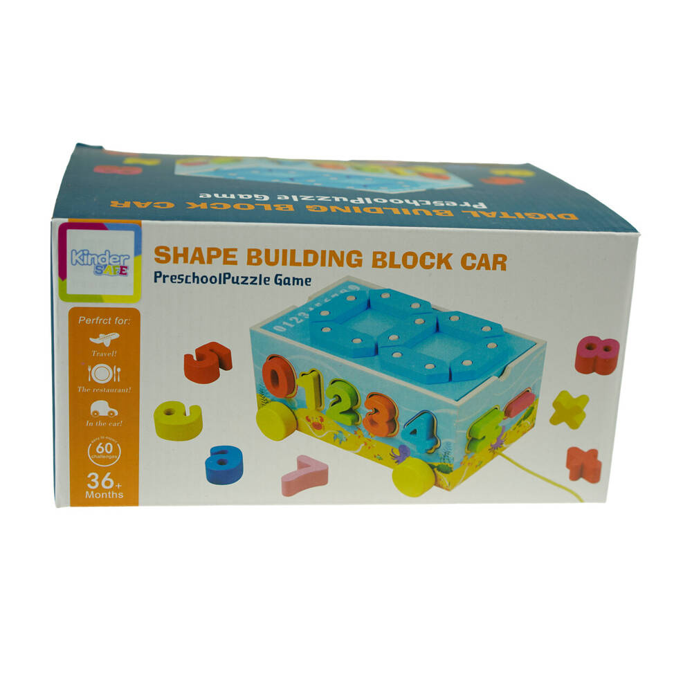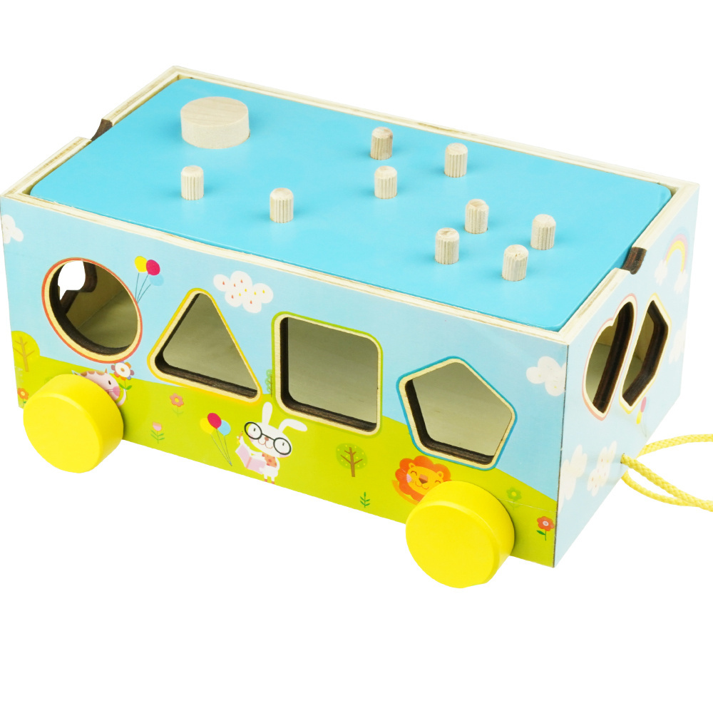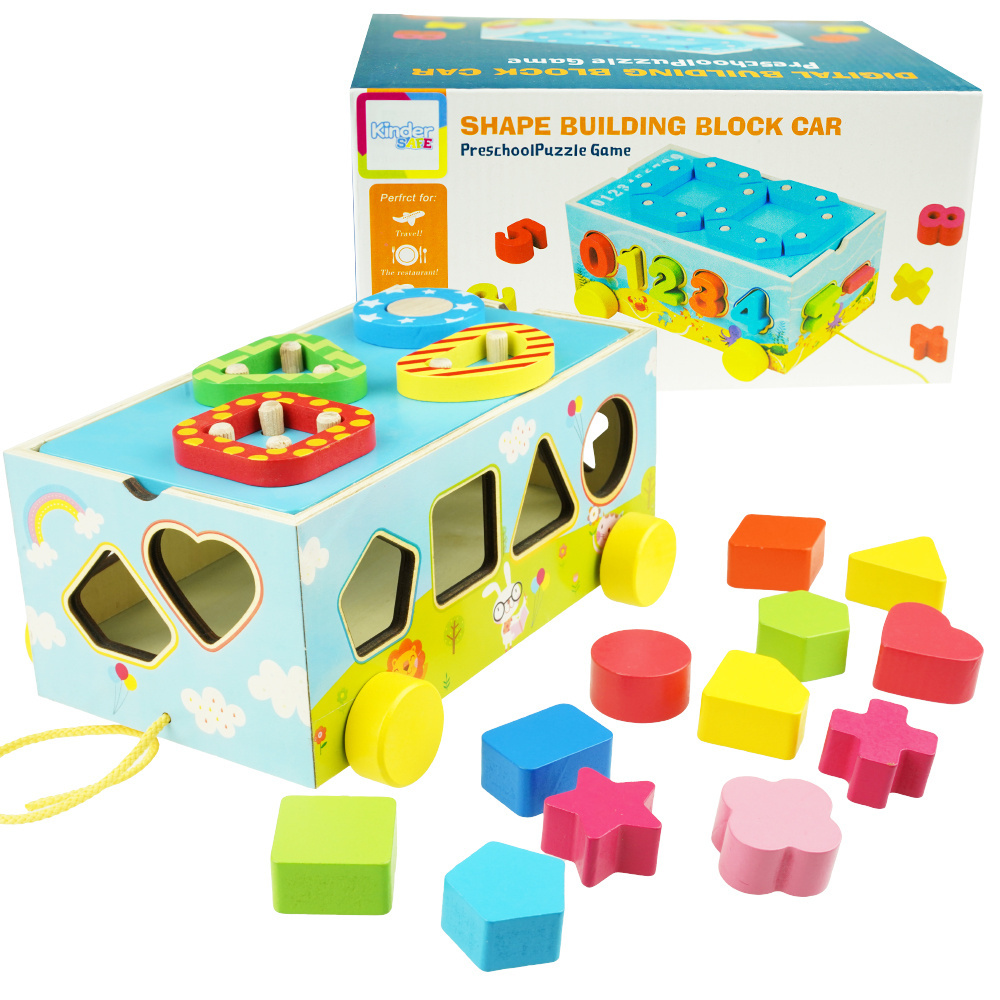 - Fantastyczna zabawa i nauka w jednym. Drewniane solidne autko z otworami w różnych kształtach.