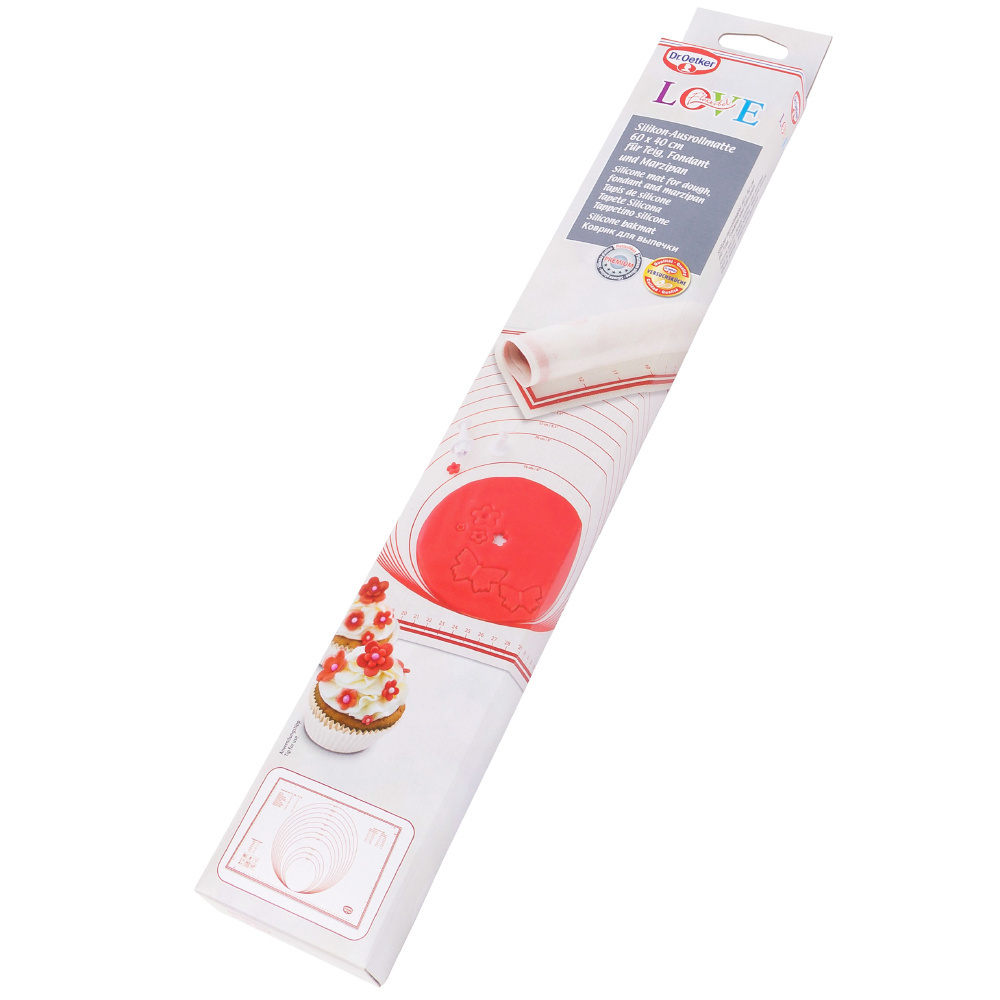 Dzięki swoim wymiarom 60 x 40 cm silikonowa mata rolująca Oetker z serii „Flexible Love” jest idealną bazą do pracy z ciastem, marcepanem czy masą cukrową.