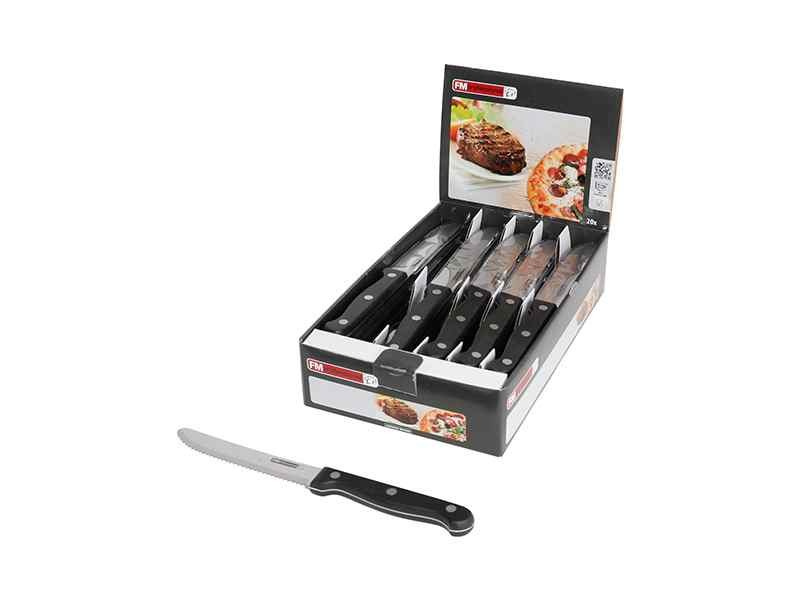 - Nóż do steków i pizzy z ostrym ostrzem wykonanym z wysokiej jakości stali nierdzewnej.