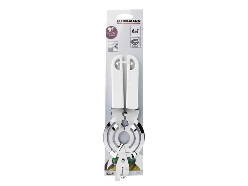 - Otwieracz 6w1 do słoików i butelek z nakrętkami w różnych rozmiarach.