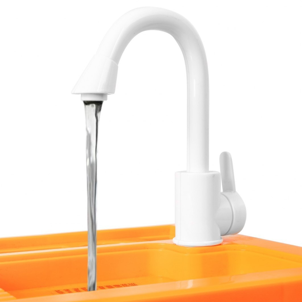 Kran z wodą to fantastyczna atrakcja dla najmłodszych. Zasilany jest 3 bateriami G13 (brak w zestawie). Lejąca się woda zachęci malucha do dbania o czystość i porządek w jego małej kuchni.