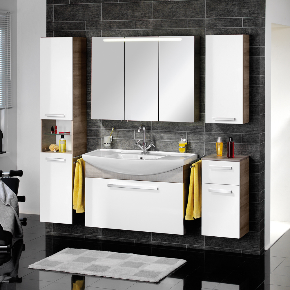 A-Vero to także szafki lustrzane dostępne w dwóch rozmiarach: o szerokości 70 cm oraz 105 cm. Szafki wyposażone są w oświetlenie LED, które doskonale oświetla taflę lustra oraz otoczenie, a dzięki lustrzanym drzwiom można dzięki nim uzyskać efekt 3D.