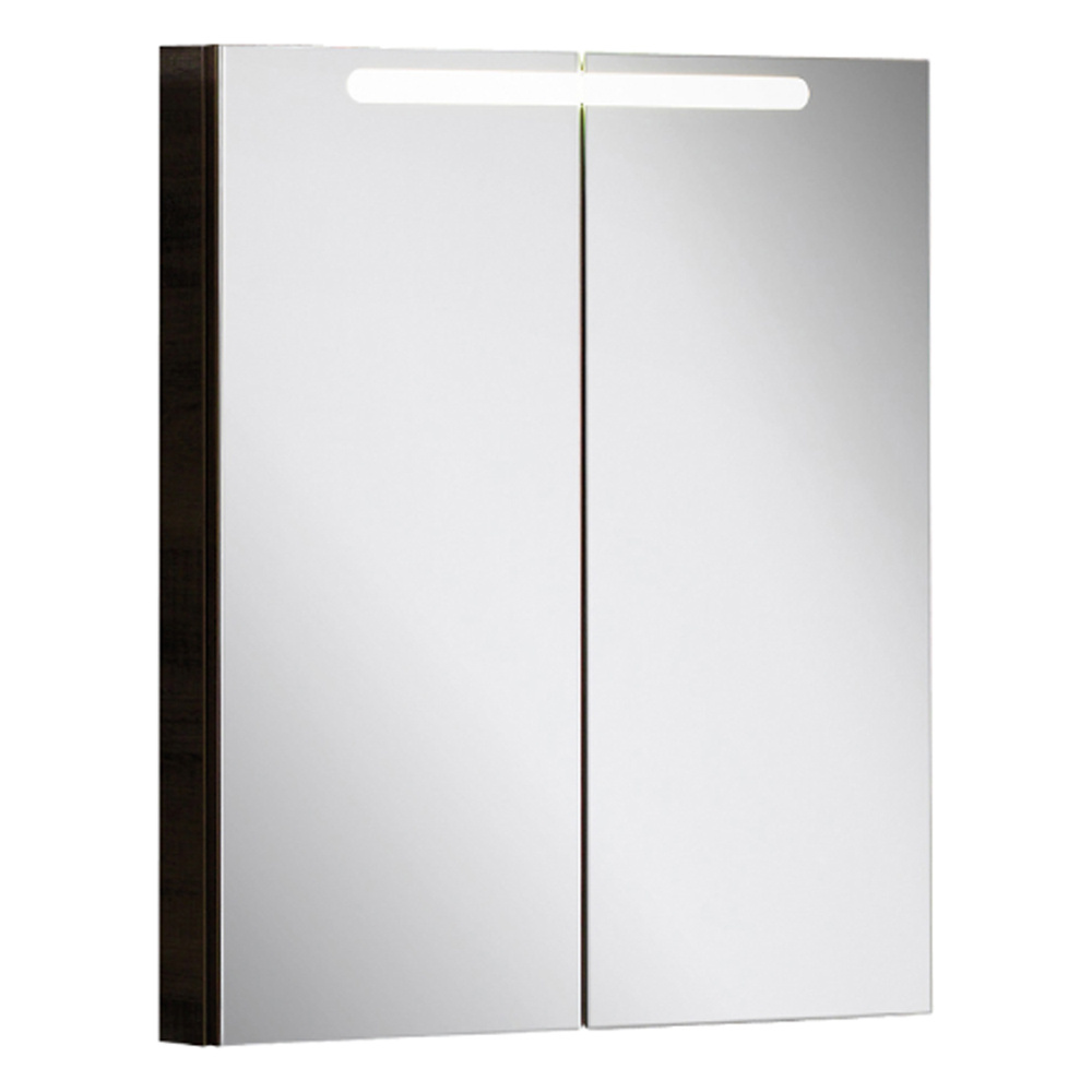 Szafka lustrzana z korpusem w kolorze szary dąb. Podwójne drzwi.