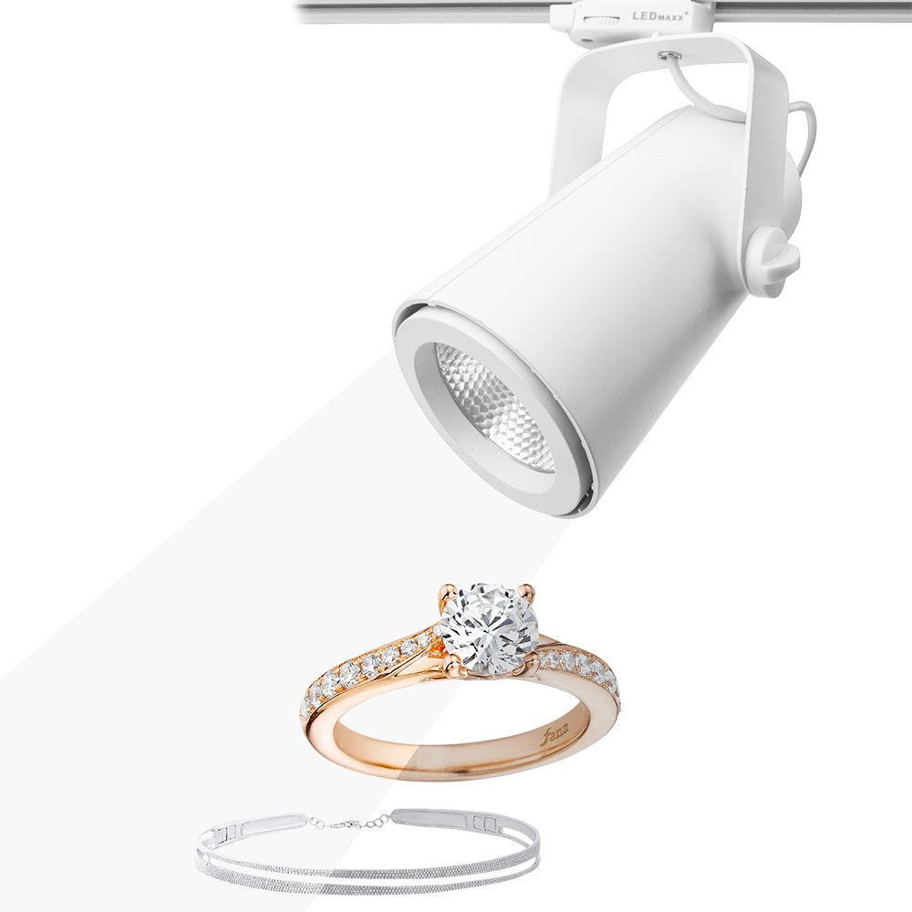 • Sklepy i galerie handlowe: Reflektory szynowe o wysokiej temperaturze barwowej są często używane w sklepach z biżuterią i alkoholami, aby zapewnić wyraźne, jasne i realistyczne oświetlenie dla produktów i wystaw.