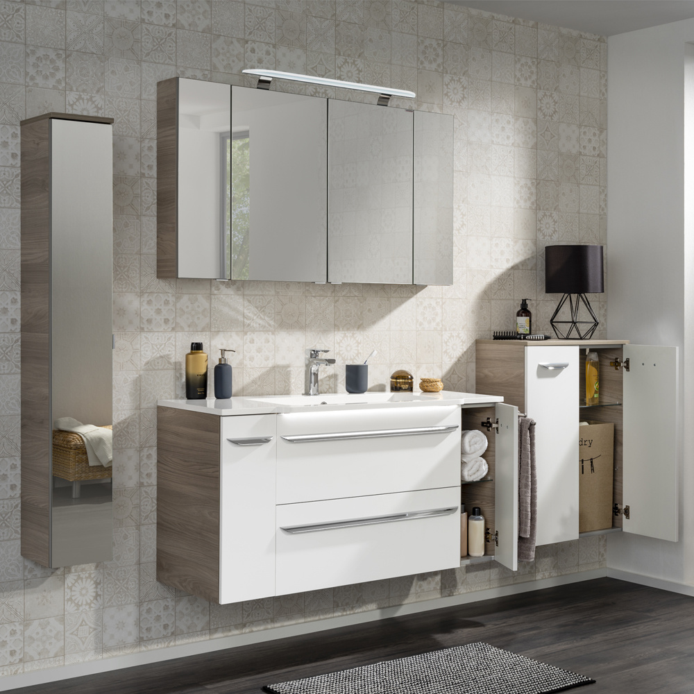 Zestaw mebli łazienkowych z serii Luxor 120 cm szary dąb + biały Fackelmann