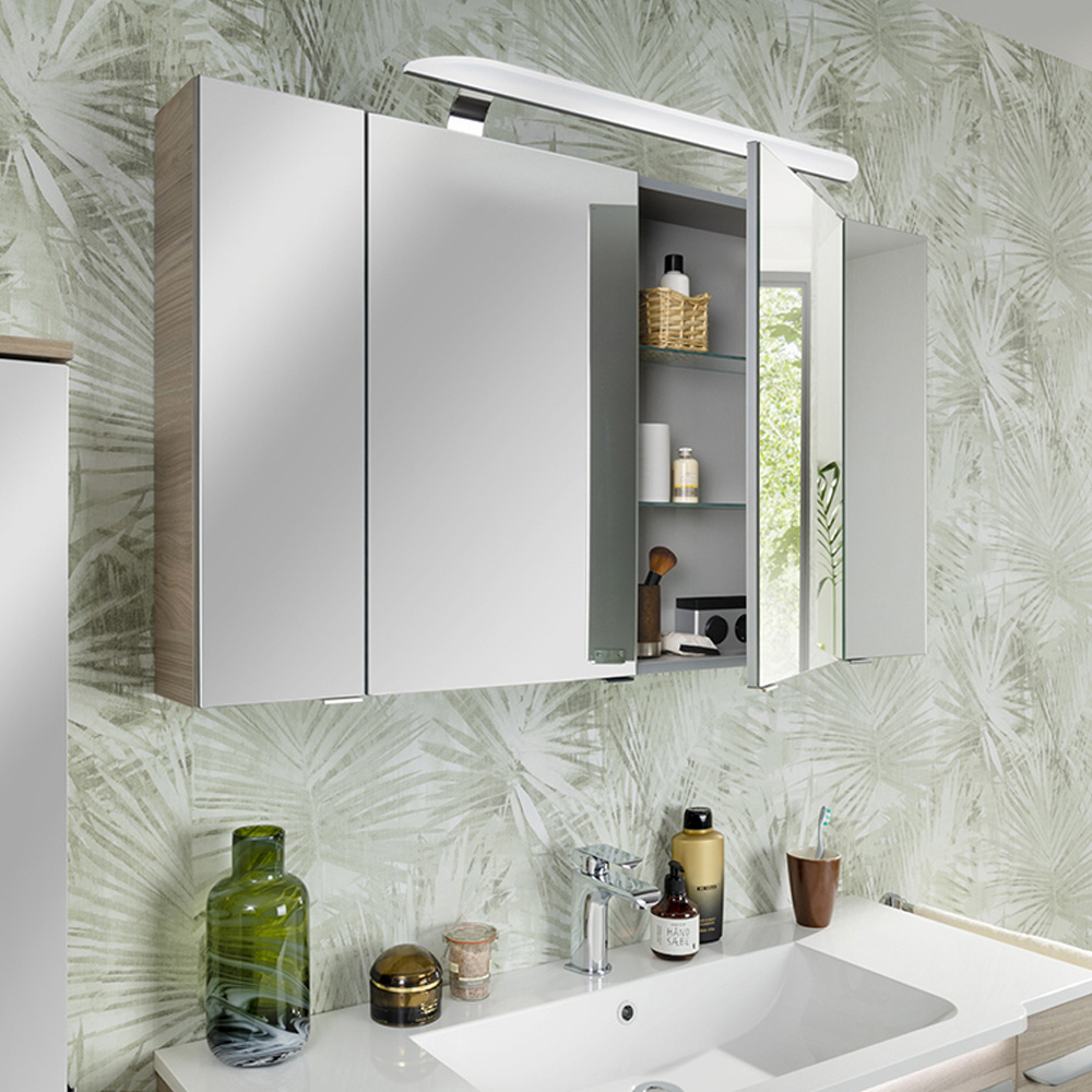 Świetnym rozwiązaniem może okazać się rozbudowa lustrzanej szafki z oświetleniem LED o szerokości 80 cm - dzięki dopasowaniu do niej szafek bocznych o szerokości 20 cm z lustrzanymi frontami, zyskać można dużo większą powierzchnię lustra, jednak nie jest to jedyna możliwość - górne szafki boczne dostępne są również w wersjach z frontami w kolorze mebli.