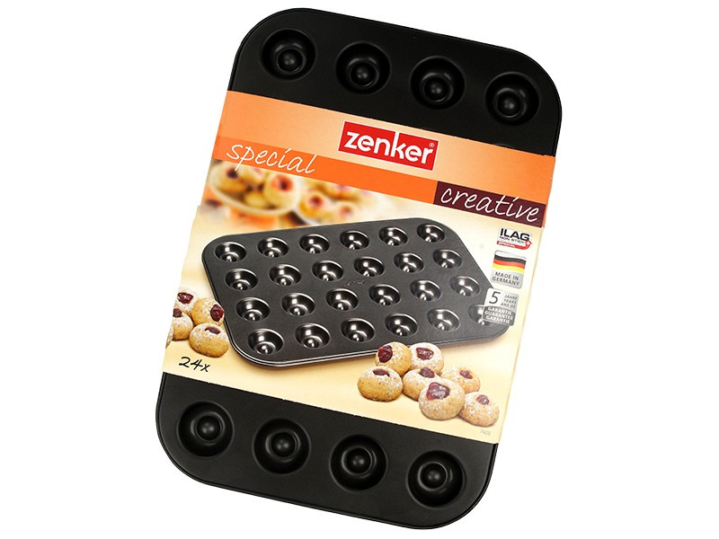 Specjalnie zaprojektowana blacha do pieczenia ciasteczek (bawole oko) z serii form do pieczenia Zenker Special Creative (38 x 26,5 cm) jest idealnym pomocnikiem do szybkiego i łatwego przygotowania 24 popularnych ciasteczek .