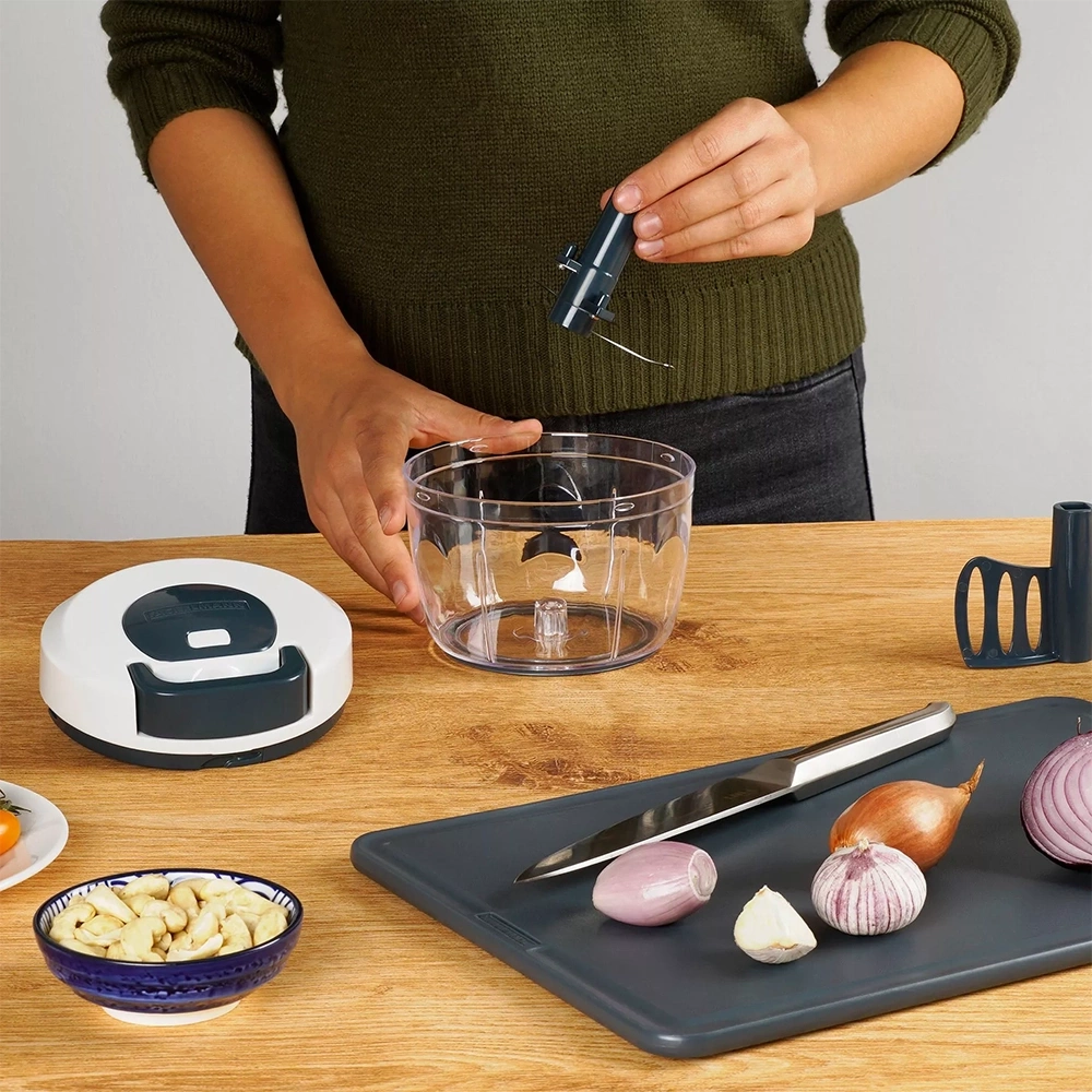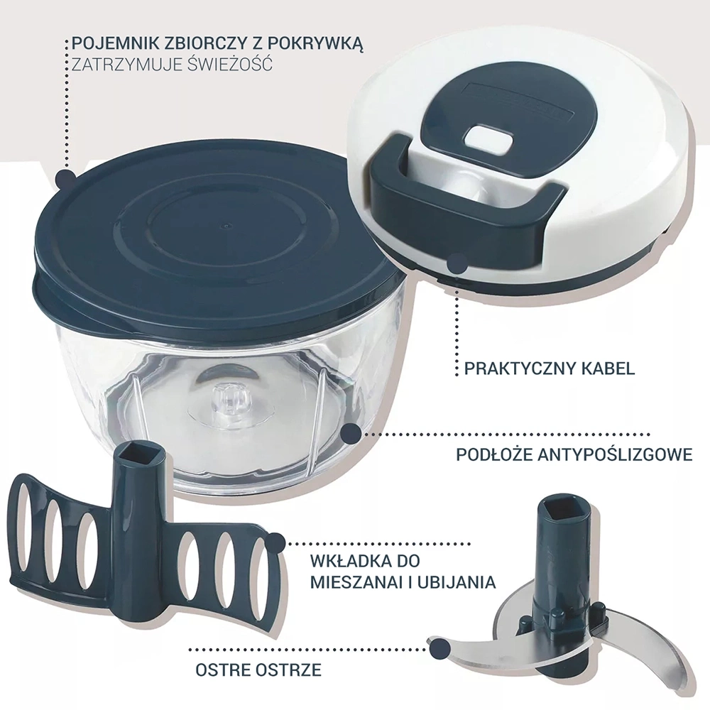 Rozdrabniacz ręczny marki Fackelmann pozwoli na szybkie i sprawne krojenie, idealny do przygotowania przecierów sosów, obiadków dla dzieci.