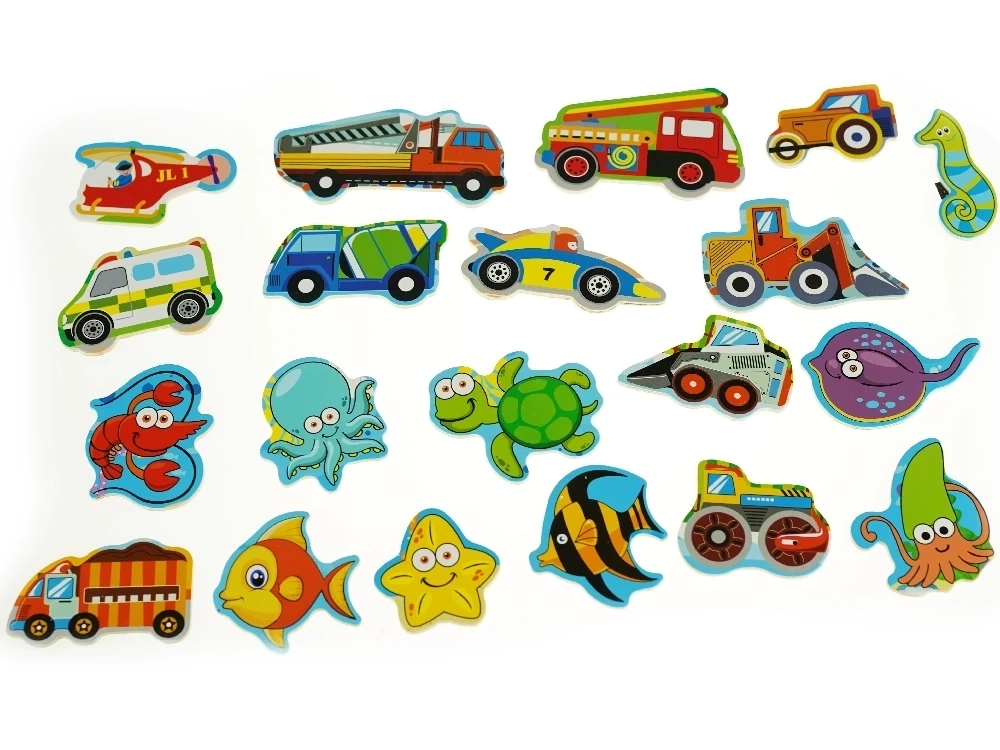 - tablicy magnetycznej, na której za pomocą magnesów dołączonych do zestawu maluch może tworzyć własne kompozycje obrazków