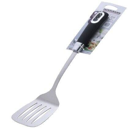 Zestaw przyborów kuchennych niemieckiej marki Fackelmann wykonanych z solidnej stali nierdzewnej oraz trwałego tworzywa pokrytego przyjemną w dotyku powłoką antypoślizgową.