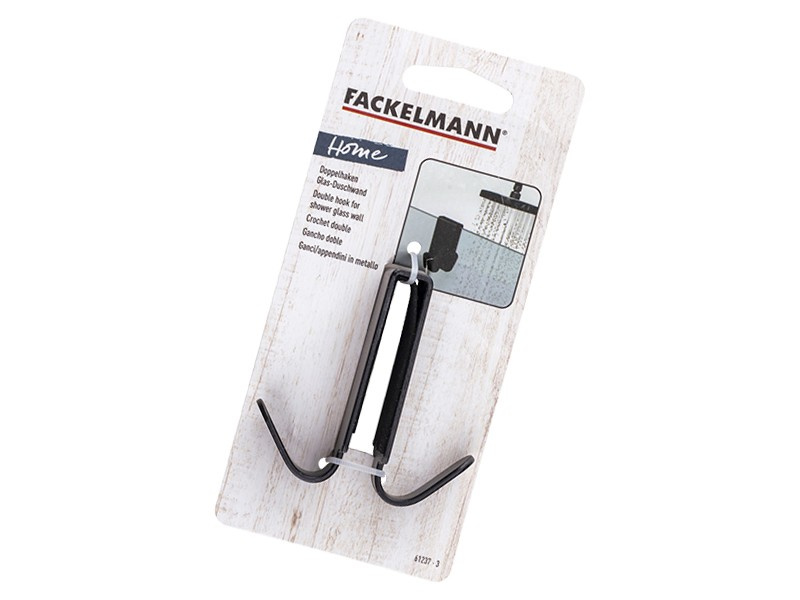 Wieszak podwójny marki Fackelmann wykonany z wysokiej jakości stali nierdzewnej inox. Doskonały do powieszenia ręcznika, szlafroka, czy gąbki kąpielowej. Wieszak świetnie sprawdzi się na szybie prysznica typu walk-in oraz innych z niezbyt grubą ścianką.