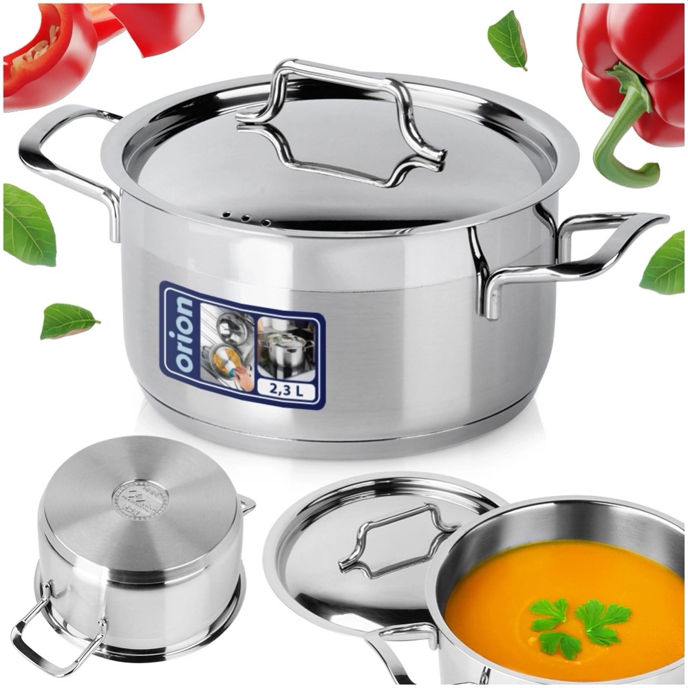 Garnek klasy premium do gotowania i duszenia w zestawie z praktyczną pokrywką. Niezwykle solidnie wykonany z najwyższej jakości materiałów. Łatwy w czyszczeniu. Dobrze kumuluje i rozprowadza ciepło. Przydatny w każdym domu. Nadaje się do zastosowania w profesjonalnej kuchni. Oryginalny produkt czeskiej marki Orion. Wyprodukowano zgodnie z europejskimi standardami.