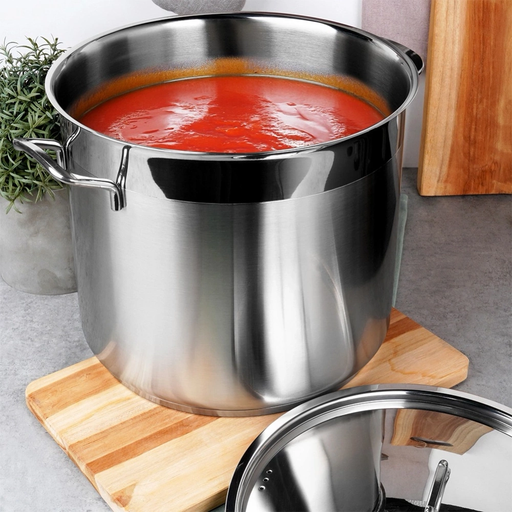 - FUNKCJONALNY - Garnek uniwersalny do gotowania oraz duszenia w zestawie ze stalową pokrywką. Nadaje się na wszystkie rodzaje kuchenek wraz z indukcją. Garnek ma pojemność 14 litrów, wysokość garnka 24 cm, średnica 28 cm. Długość garnka z uchwytami wynosi 38 cm, a wysokość z pokrywką to 29 cm. Garnek z serii Anett.