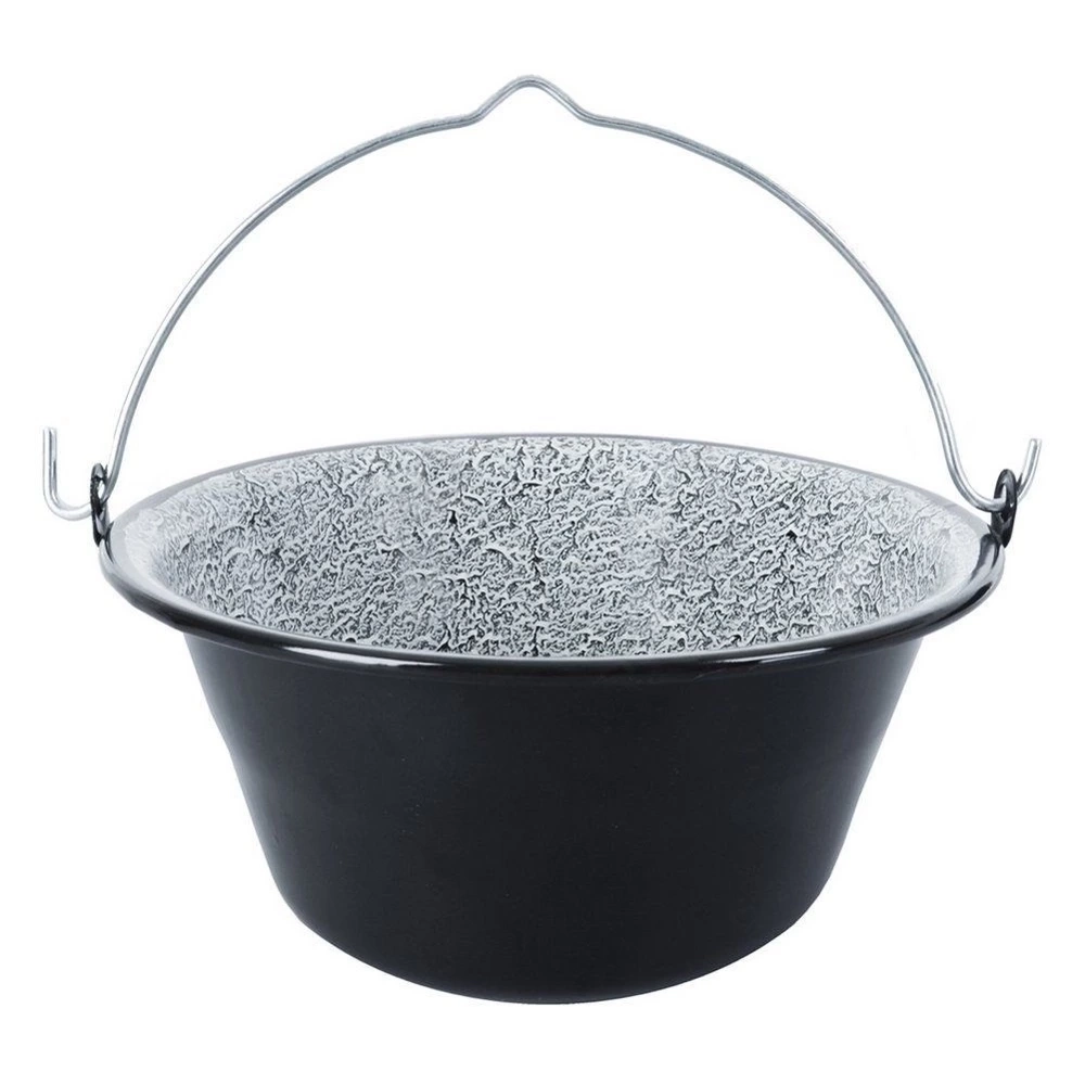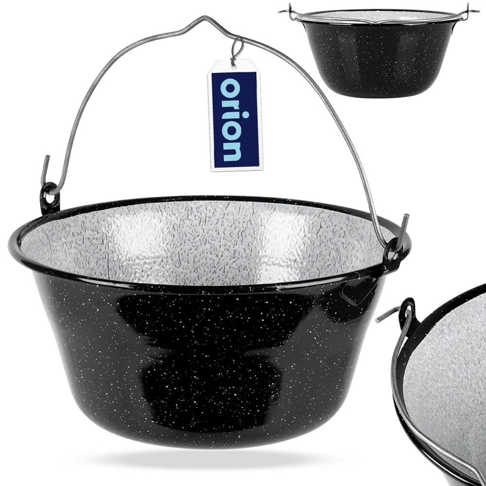 Emaliowany kociołek węgierski z uchwytem do zawieszenia. Idealny do gotowania, pieczenia, duszenia oraz smażenia potraw na ognisku, grillu lub nad otwartym ogniem. Potrawy przygotowane w kociołku będą soczyste i aromatyczne. Przydatny w trakcie różnego rodzaju spotkań, uroczystości czy imprez organizowanych na świeżym powietrzu. Kociołek można powiesić na trójnogu żelaznym (kod kat. 111056). Pokrywka do kociołka również w ofercie pod kodem kat. 126301. Naczynia emaliowane mogą posiadać niedoskonałości produkcyjne, które są naturalne dla tego typu naczyń: wybrzuszenia, niesymetryczne nadruki itp. Nie wpływają one na jakość produktu i przygotowywanych potraw, a jedynie podkreślają ich metodę tradycyjnego wykonania. Oryginalny produkt czeskiej marki Orion. Wyprodukowano zgodnie z europejskimi standardami.