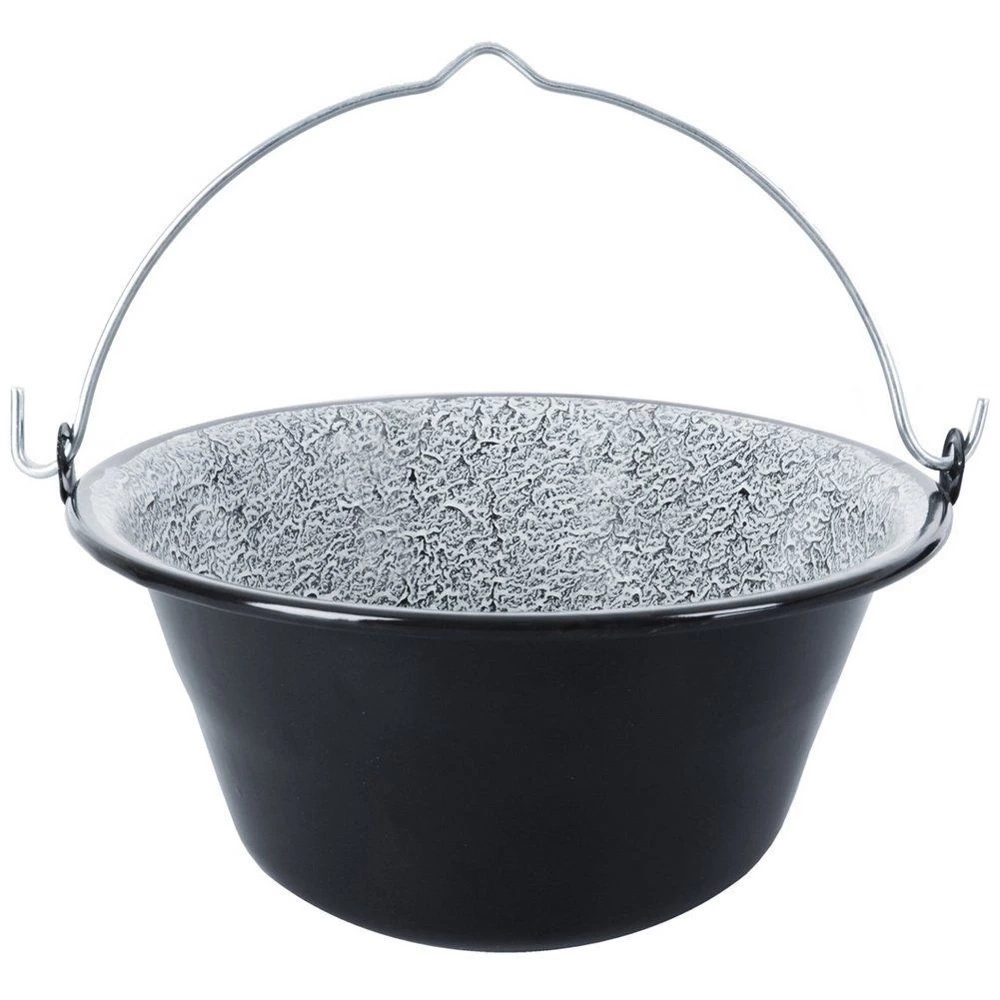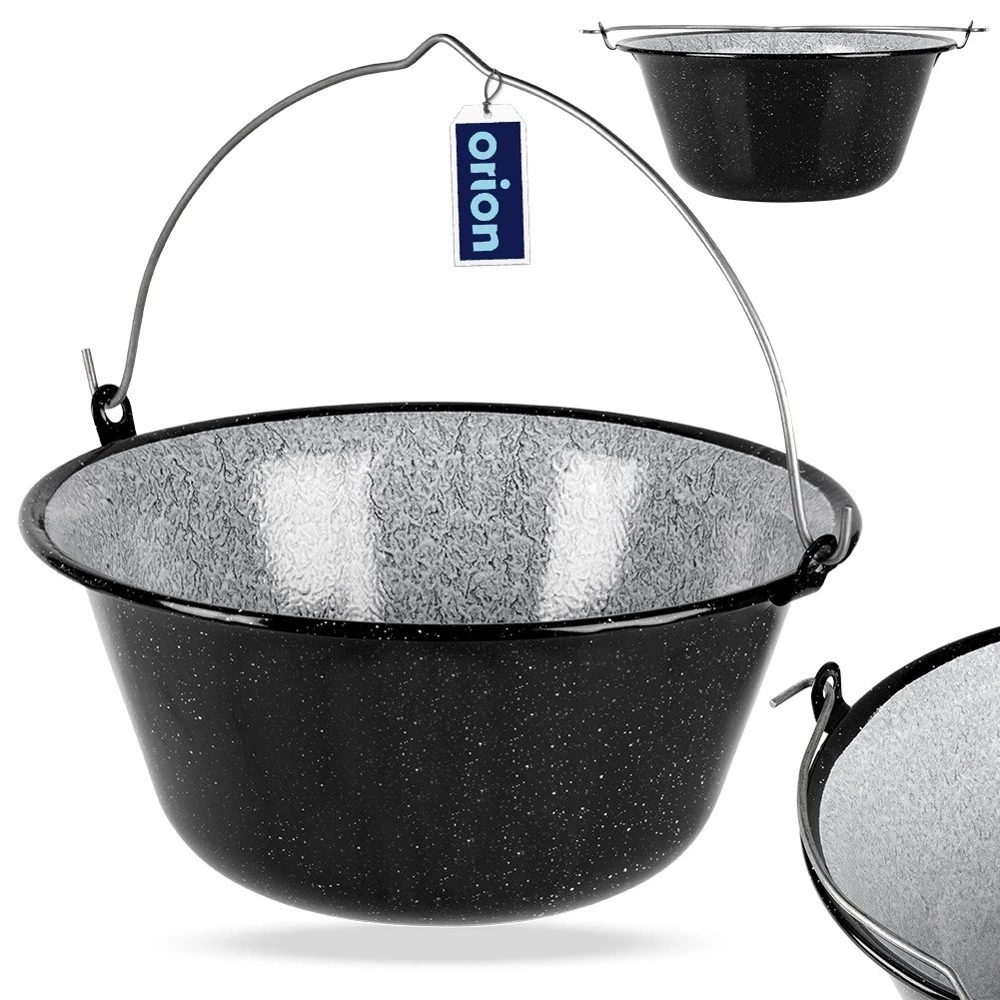 Emaliowany kociołek węgierski z uchwytem do zawieszenia. Idealny do gotowania, pieczenia, duszenia oraz smażenia potraw na ognisku, grillu lub nad otwartym ogniem. Potrawy przygotowane w kociołku będą soczyste i aromatyczne. Przydatny w trakcie różnego rodzaju spotkań, uroczystości czy imprez organizowanych na świeżym powietrzu. Kociołek można powiesić na trójnogu żelaznym (kod kat. 111056). Pokrywka do kociołka również w ofercie pod kodem kat. 126303. Naczynia emaliowane mogą posiadać niedoskonałości produkcyjne, które są naturalne dla tego typu naczyń: wybrzuszenia, niesymetryczne nadruki itp. Nie wpływają one na jakość produktu i przygotowywanych potraw, a jedynie podkreślają ich metodę tradycyjnego wykonania. Oryginalny produkt czeskiej marki Orion. Wyprodukowano zgodnie z europejskimi standardami.