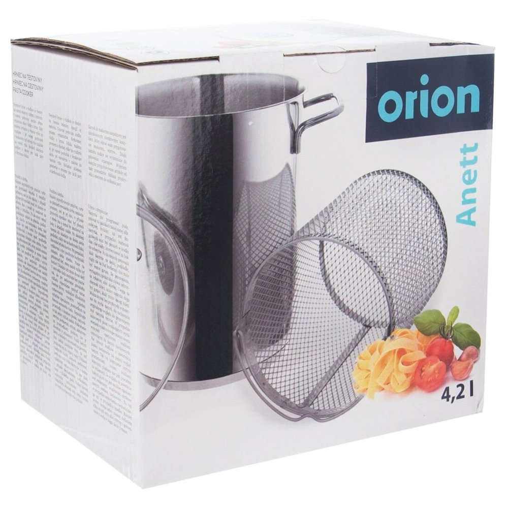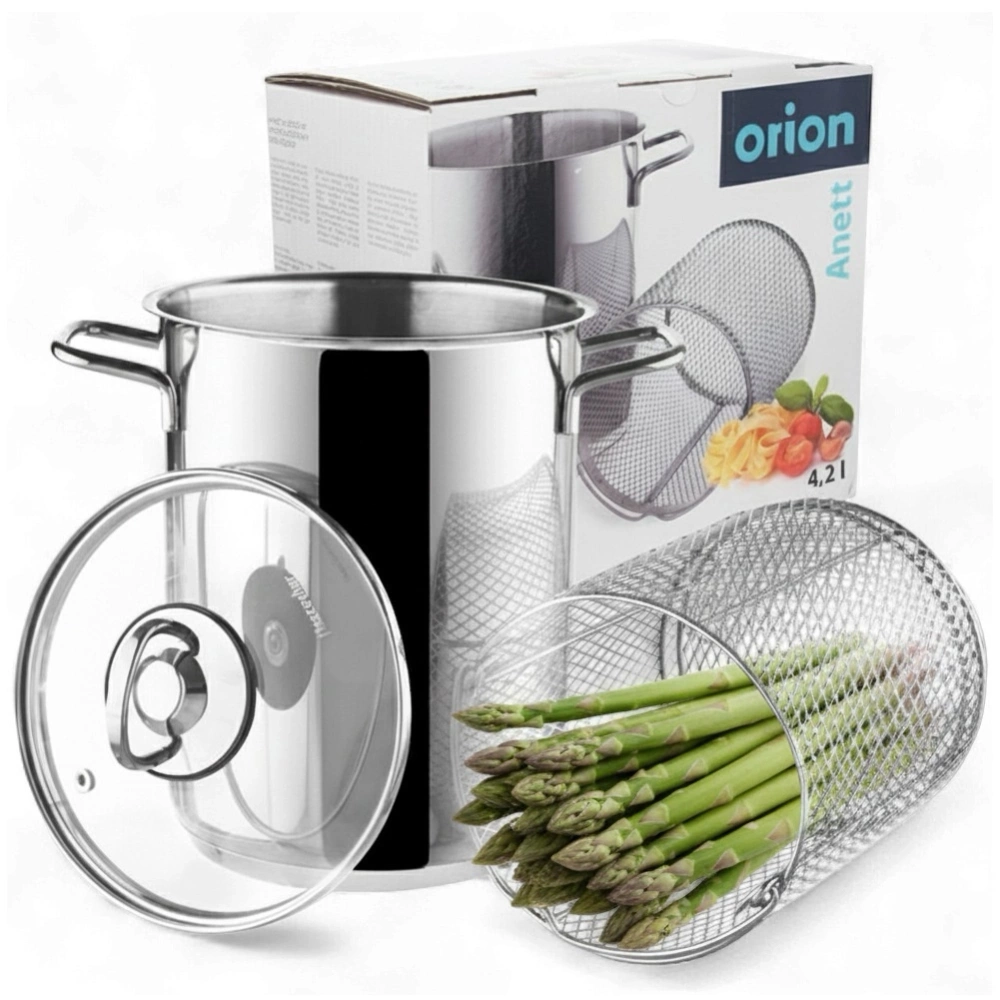 Garnek do szparagów wyposażony w pokrywkę z odpowietrznikiem pary oraz sitko do gotowania. Z jego pomocą idealnie ugotujemy szparagi, makaron, ryż, kaszę, a także zblanszujemy warzywa i owoce. Niezwykle solidnie wykonany z najwyższej jakości materiałów. Dobrze wyprofilowany kształt garnka, pozwala na łatwe czyszczenie. Zastosowanie sitka podczas gotowania szparagów, pozwoli na ich perfekcyjne ugotowanie i odcedzenie bez konieczności użycia dodatkowego cedzaka kuchennego. W naszej ofercie również inne naczynia z serii ANETT. Oryginalny produkt czeskiej marki Orion. Wyprodukowano zgodnie z europejskimi standardami.