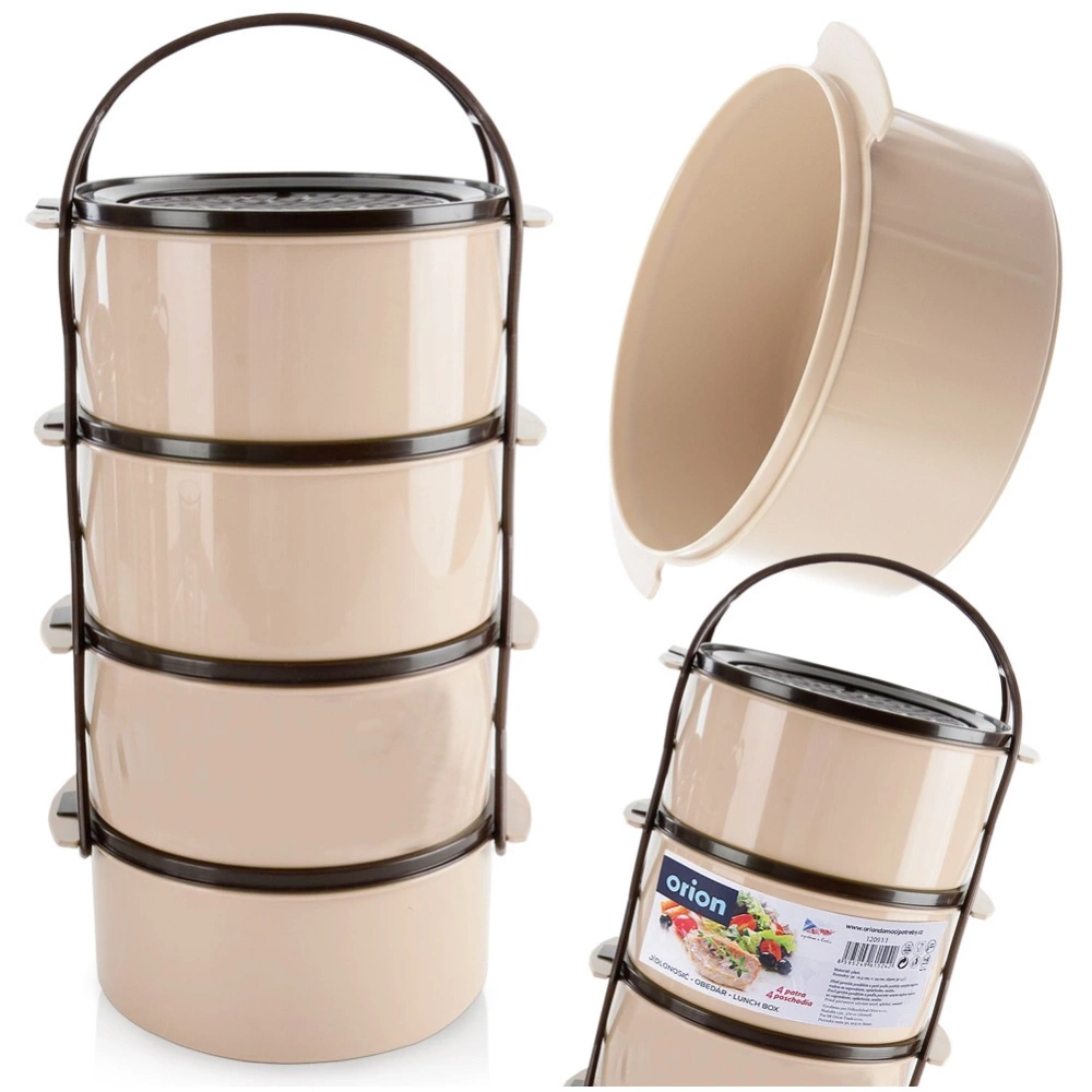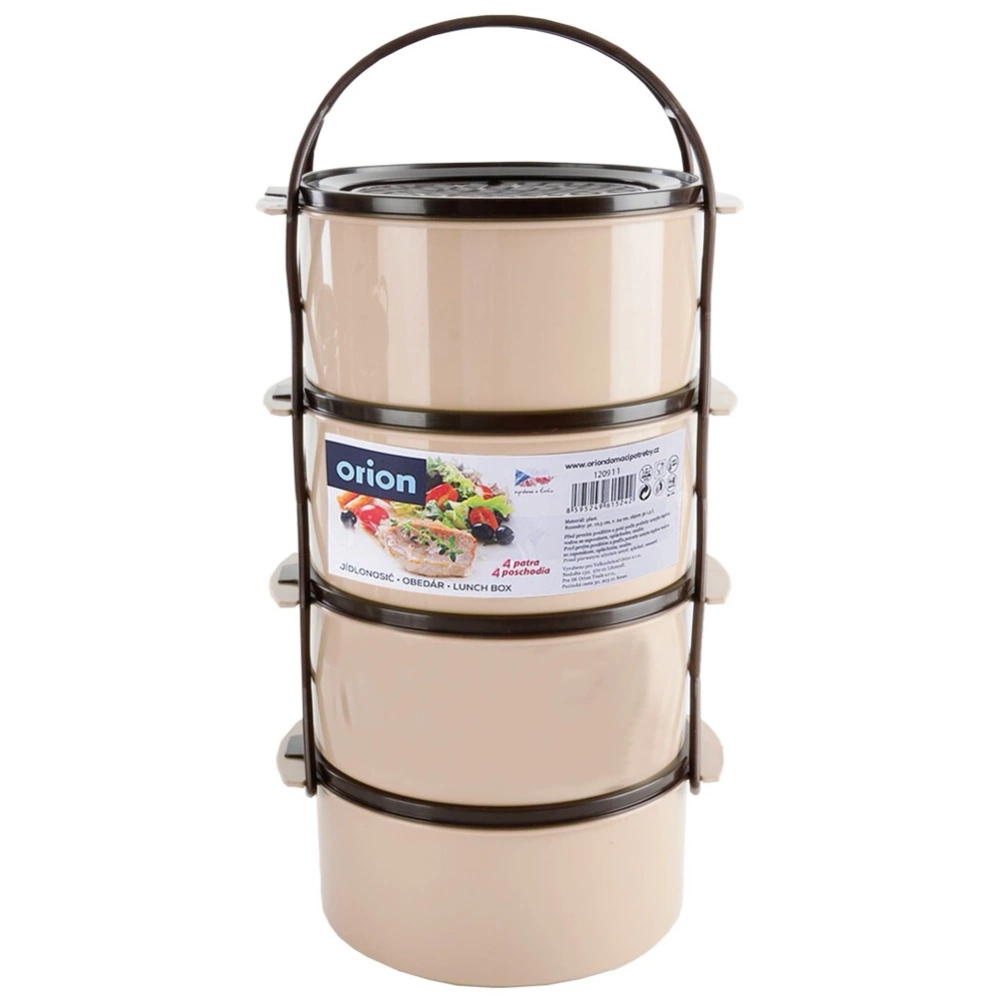 Menażka obiadowa do transportowania żywności. Wykonana z materiałów bezpiecznych dla zdrowia i neutralnych dla żywności. Posiada cztery pojemniki, które pozwolą odpowiednio przenieść posiłek. Pojemniki połączone są klamrą, dzięki czemu możemy wygodnie je piętrować. Doskonale sprawdzi się podczas wędrówek, biwaków, górskich wypraw oraz innych wypadów. Latem możemy wykorzystać ją do przechowywania i przenoszenia lodów np. podczas przyjęć w ogrodzie. Oryginalny produkt czeskiej marki Orion. Wyprodukowano zgodnie z europejskimi standardami.