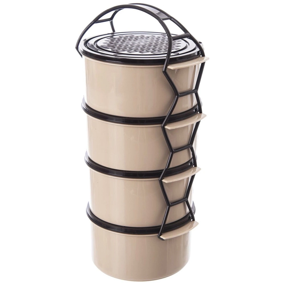 - Menażka do przenoszenia żywności. W zestawie 4 pojemniki z pokrywkami oraz stelaż z uchwytem. Wykonana z najwyższej jakości tworzywa. Każdy pojemnik ma pojemność 1,5 l.