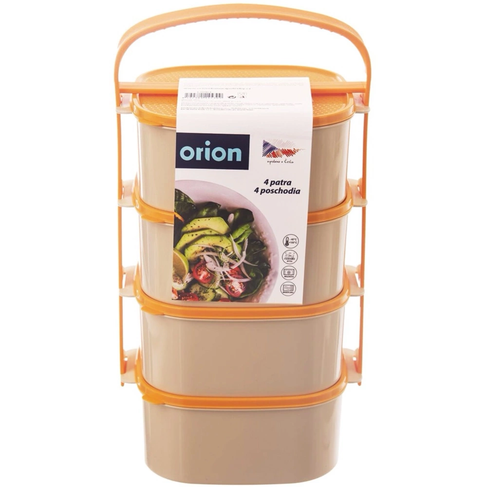 Menażka obiadowa do transportowania żywności. Wykonana z materiałów bezpiecznych dla zdrowia i neutralnych dla żywności. Posiada cztery pojemniki, które pozwolą odpowiednio przenieść posiłek. Pojemniki połączone są klamrą, dzięki czemu możemy wygodnie je piętrować. Doskonale sprawdzi się podczas wędrówek, biwaków, górskich wypraw oraz innych wypadów. Latem możemy wykorzystać ją do przechowywania i przenoszenia lodów np. podczas przyjęć w ogrodzie. Oryginalny produkt czeskiej marki Orion. Wyprodukowano zgodnie z europejskimi standardami.