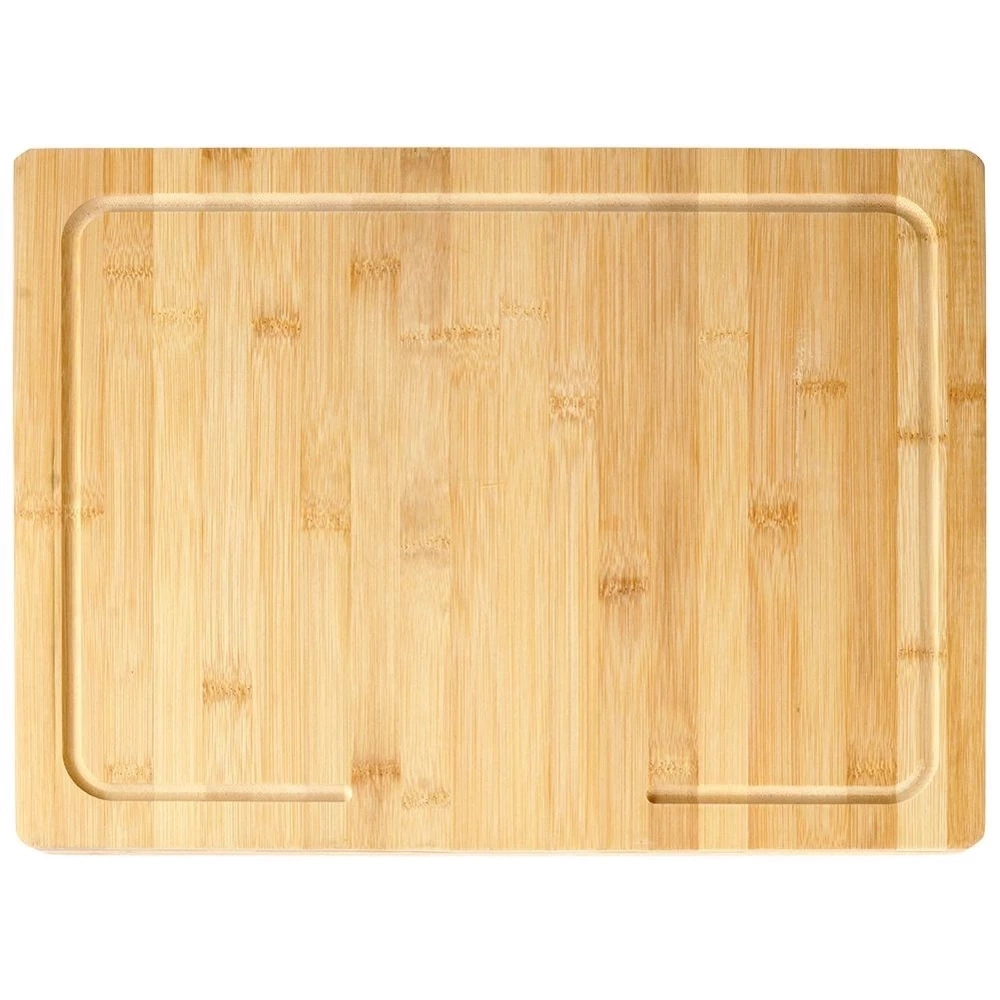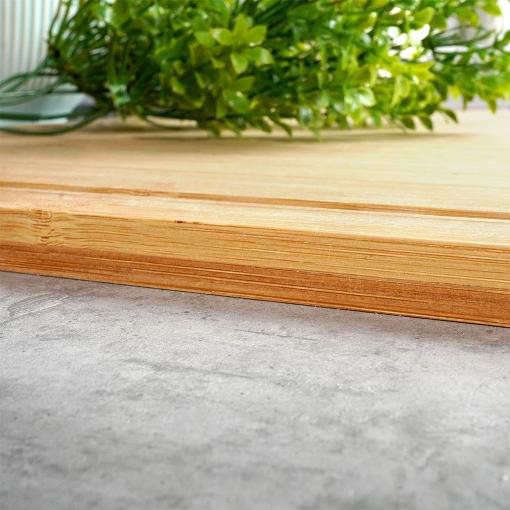 - Duża deska kuchenna z rantem wykonana z drewna bambusowego. Może służyć do krojenia produktów spożywczych lub spełniać funkcję stolnicy.