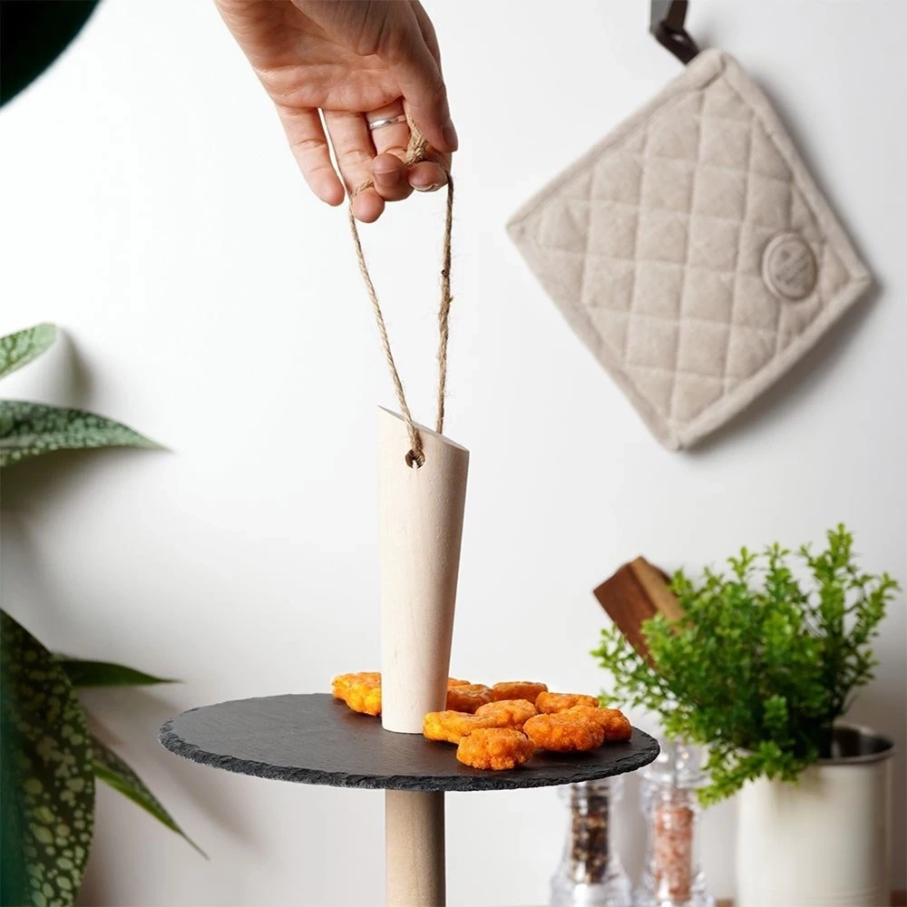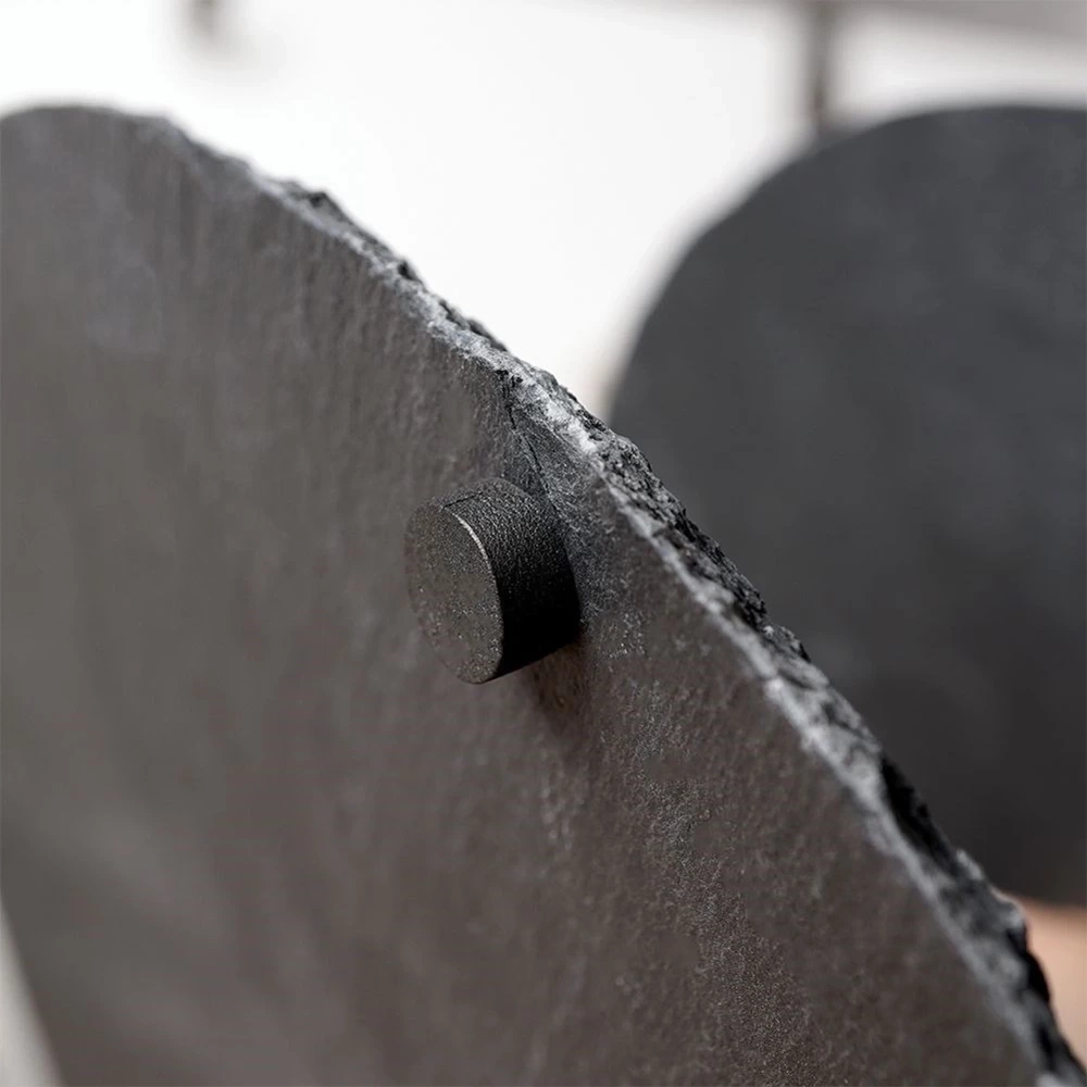 - SOLIDNA - Tace wykonane z kamienia łupkowego w czarnym kolorze, a część mocująca wykonana z drewna. Patera jest solidna i stabilna.