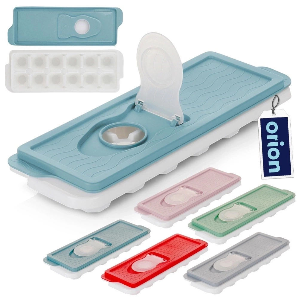 Forma na lód do przygotowania 12 kostek lodu. Foremka jest zamykana, dzięki czemu w łatwy sposób przeniesiemy napełniony pojemnik do lodówki. Kostki wykorzystamy do wody, napojów oraz drinków alkoholowych. W foremce możemy zamrozić również soki owocowe oraz sorbety otrzymując zamrożone napoje w formie lodów. Forma występuje w różnych kolorach, nie ma możliwości wyboru - wysyłamy losowo. Oryginalny produkt czeskiej marki Orion. Wyprodukowano zgodnie z europejskimi standardami.