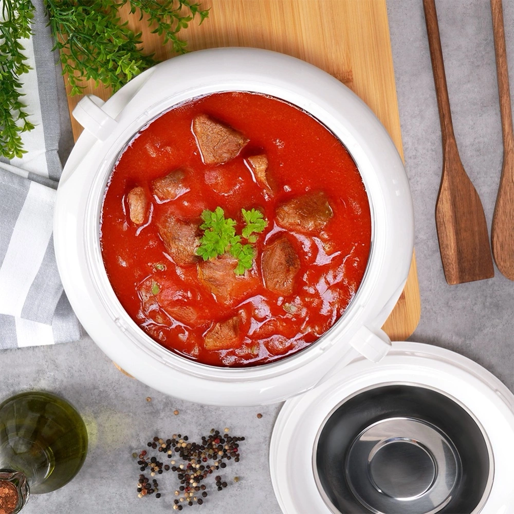 - PRAKTYCZNA - Termomisa do utrzymywania ciepła przechowywanych potraw. Termos obiadowy ma pojemność 2,3 litry. Termomisa ma wymiary 11 x 24 cm. Termomisa z serii Deluxe.