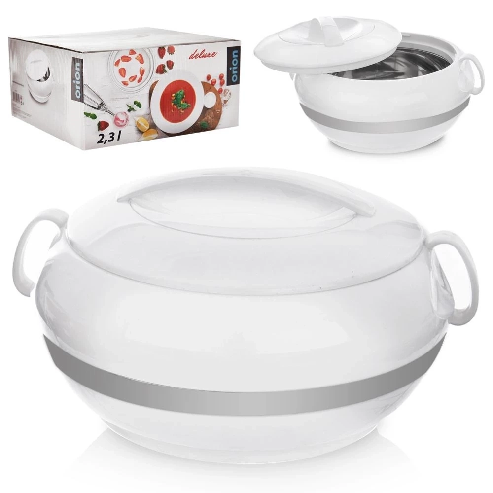 Termomisa do przechowywania potraw. Utrzyma ciepło umieszczonej w niej potrawy. Latem możemy przechowywać w niej lody np. podczas przyjęć w ogrodzie, by uniknąć szybkiego roztopienia lodów. Termomisa jest lekka, co zapewni wygodne przenoszenie. Wewnętrzna, gładka powierzchnia zapewni wygodne mycie. W celu utrzymania dłużej zimnej temperatury w termomisie należy umieścić ją na około godzinę do lodówki przed włożeniem zawartości, chcąc utrzymać dłużej ciepło potraw należy wlać do termomisy gorącą wodę i wylać ją po 1-2 minutach. Oryginalny produkt czeskiej marki Orion. Wyprodukowano zgodnie z europejskimi standardami.