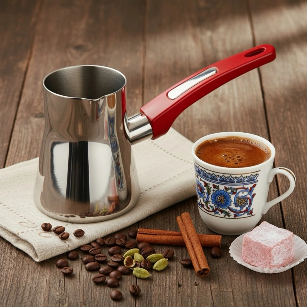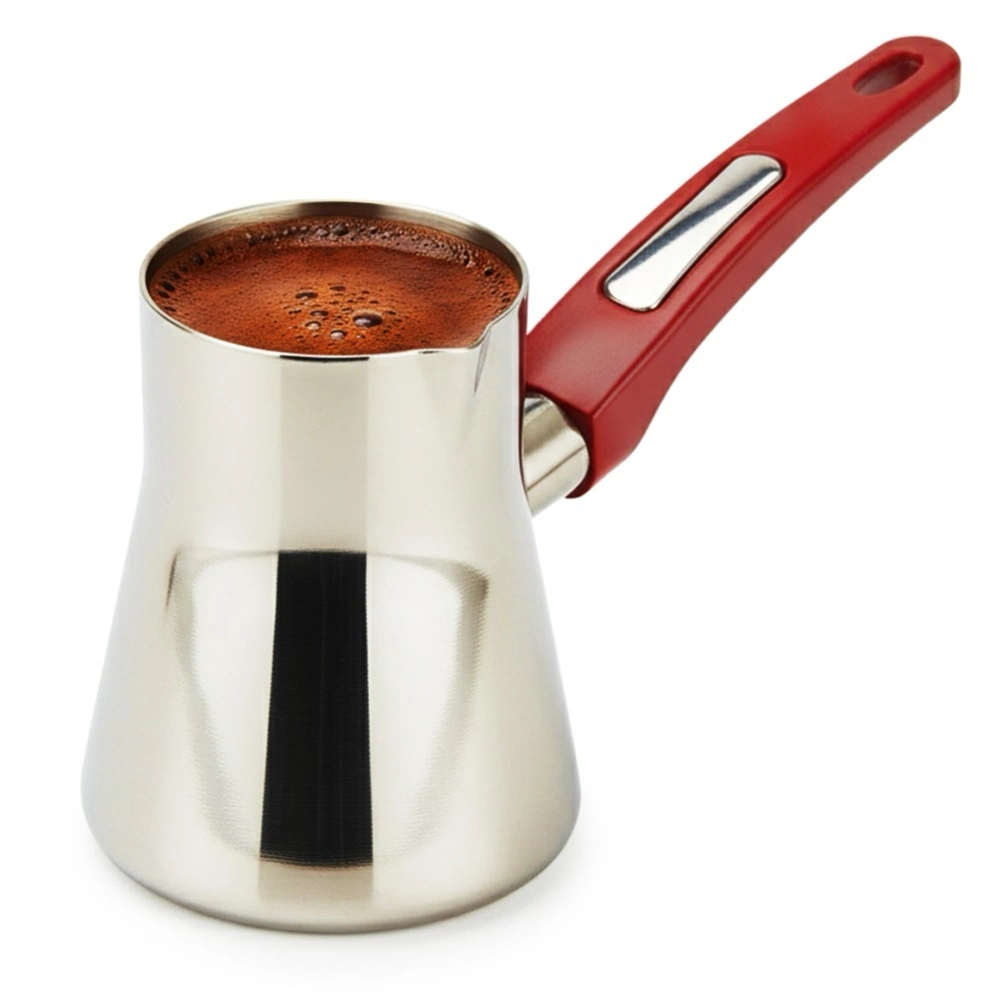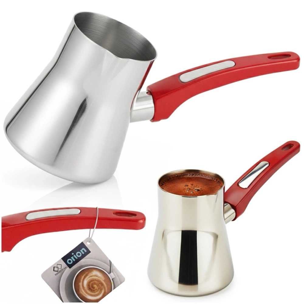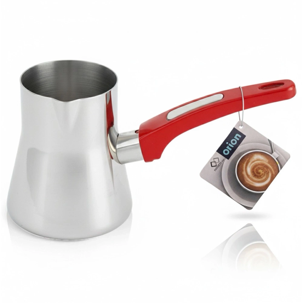Stalowy tygielek do parzenia kawy po turecku to prawdziwy niezbędnik dla każdego miłośnika tego napoju. W celu uzyskania wyjątkowego smaku kawy po turecku należy wsypać zmielone ziarna kawy do tygielka, następnie zalać wodą i podgrzewać na małym ogniu. Należy powtarzać tą czynność kilkukrotnie, tak aby nie doprowadzić do wrzenia. Oryginalny produkt czeskiej marki Orion. Wyprodukowano zgodnie z europejskimi standardami.