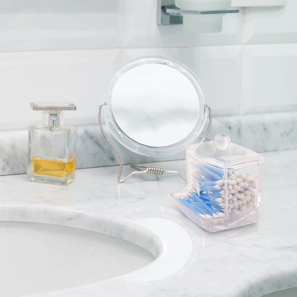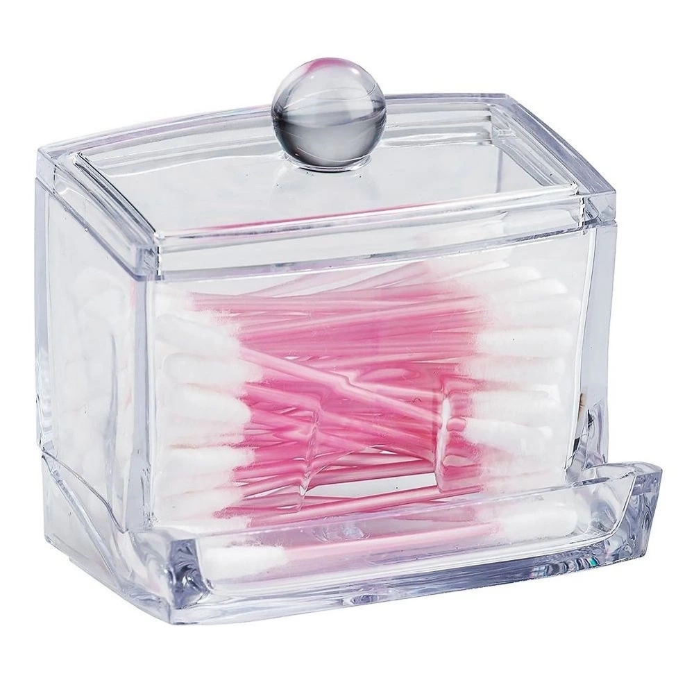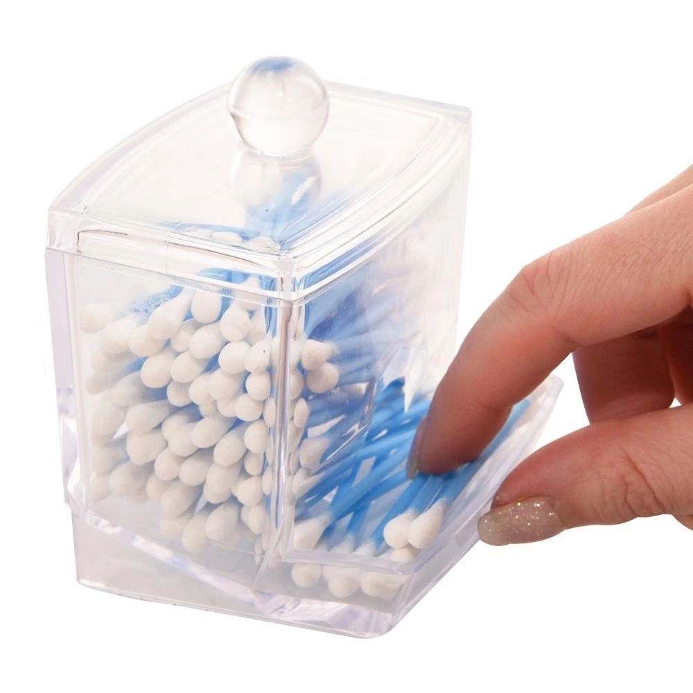 - PRAKTYCZNY - Pojemnik do przechowywania patyczków kosmetycznych, bardzo praktyczny i przydatny w każdym domu. Wymiar pojemnika wynoszą 9 x 7 x 9 cm.