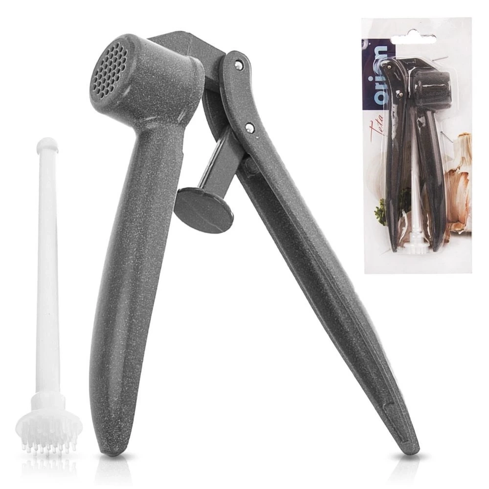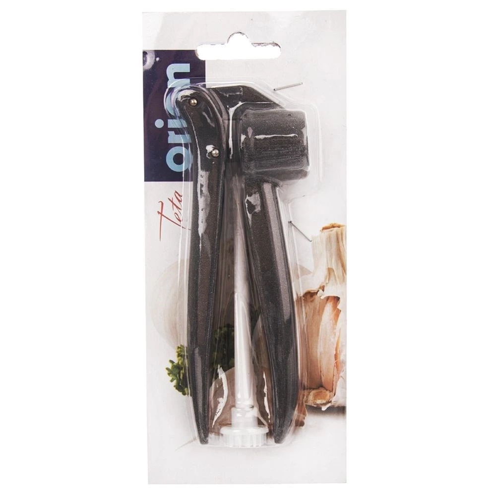 Aluminiowy wyciskacz do czosnku z praktycznym czyścikiem. Wykonany z najwyższej jakości materiałów. Wyciskacz zastąpi mozolne tarcie na tarce lub siekanie świeżego czosnku nożem. Wygodny w użytkowaniu, pomieści cały ząbek czosnku. Konstrukcja zapewnia precyzyjne wyciskanie czosnku, jak również ułatwia oczyszczenie praski z jego resztek. Przydatny w każdej kuchni. Wykonany z materiałów bezpiecznych dla zdrowia i neutralnych dla żywności. Oryginalny produkt czeskiej marki Orion. Wyprodukowano zgodnie z europejskimi standardami.