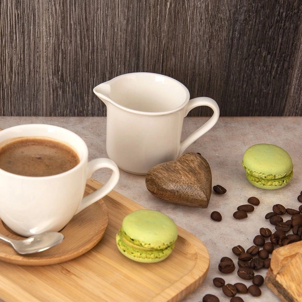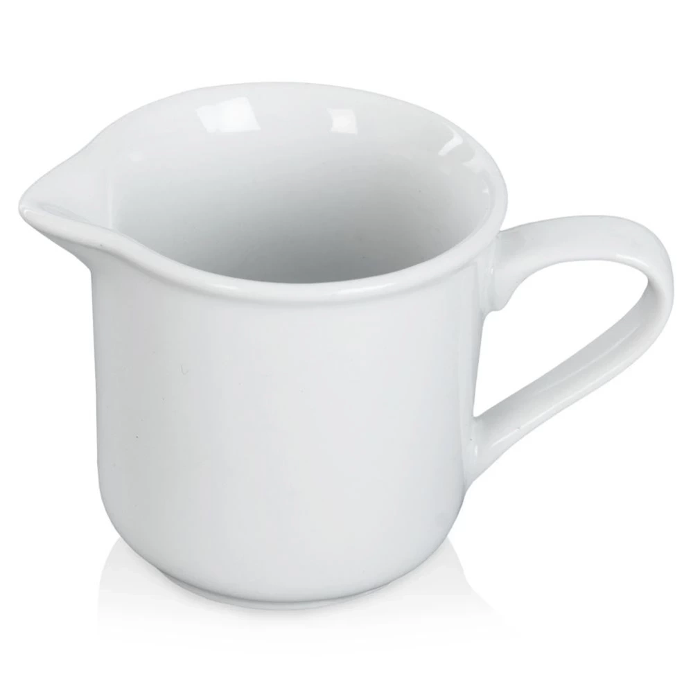 - Porcelanowy mlecznik z uchwytem. Posiada praktyczny dzióbek, który pozwoli odmierzyć odpowiednią ilość śmietanki lub mleka. Idealnie komponuje się z każdą zastawą stołową.