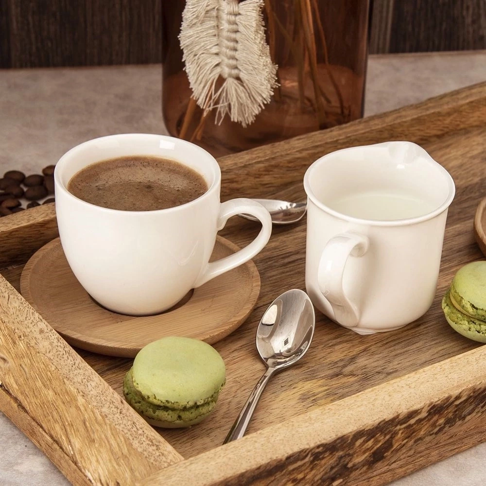 - PORCELANOWY - Wykonany z wysokiej jakości porcelany w kolorze białym. Mlecznik jest niezwykle solidny i wytrzymały.