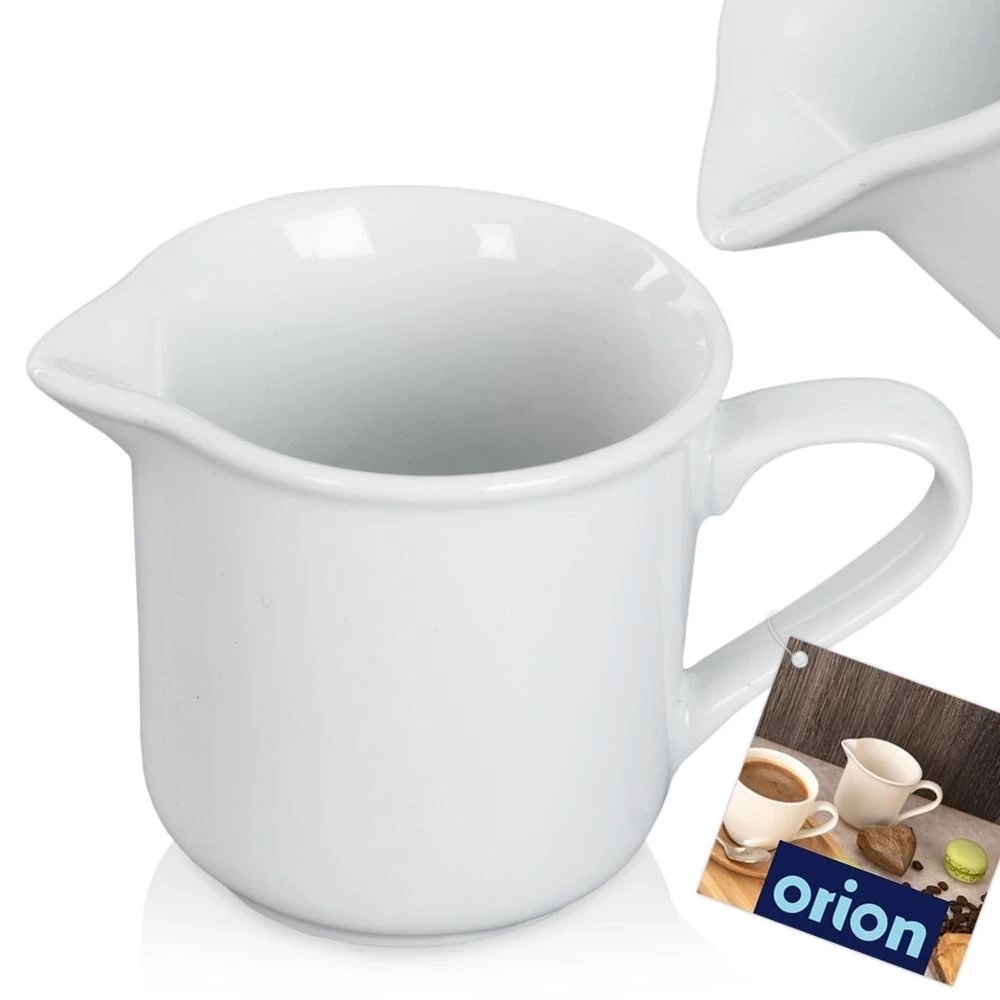 Dzbanuszek idealny na mleko, śmietankę lub sos. Sprawdzi się zarówno w domu, jak i w gastronomii. Wygodny w użytkowaniu, posiada praktyczny dzióbek i uchwyt, który ułatwia nalewanie. Niezwykle przydatny do serwowania porcji mleczka lub śmietanki do kawy. Posiada modny, biały kolor i pięknie prezentuje się na stole. Idealnie komponuje się z inną zastawą stołową. Oryginalny produkt czeskiej marki Orion. Wyprodukowano zgodnie z europejskimi standardami.