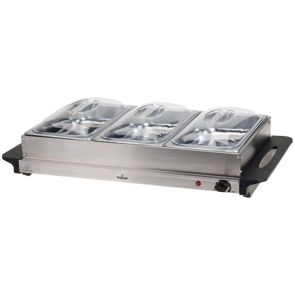 - Podgrzewacz bufetowy z 3 pojemnikami o pojemności 2 l. Wykonany ze stali nierdzewnej. Izolowane uchwyty, włącznik/wyłącznik, regulowana temp., wskaźnik temp., antypoślizgowy spód.